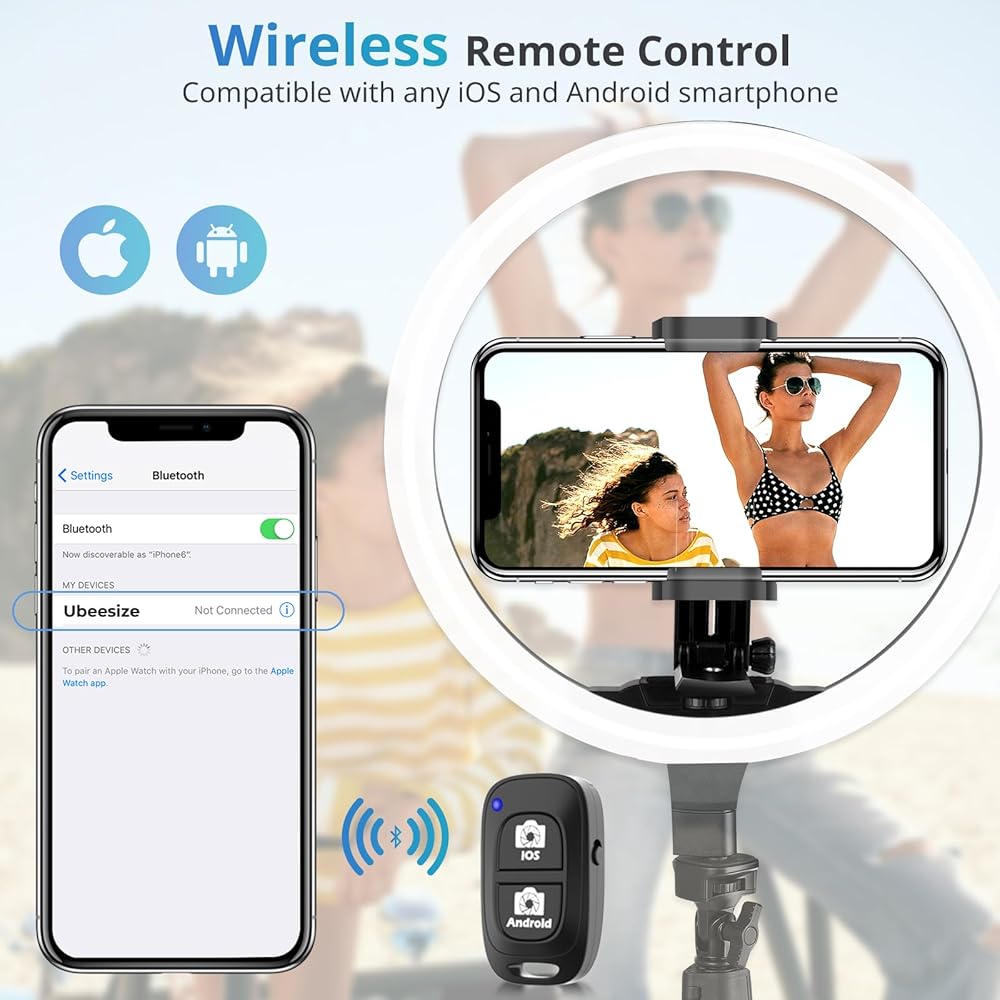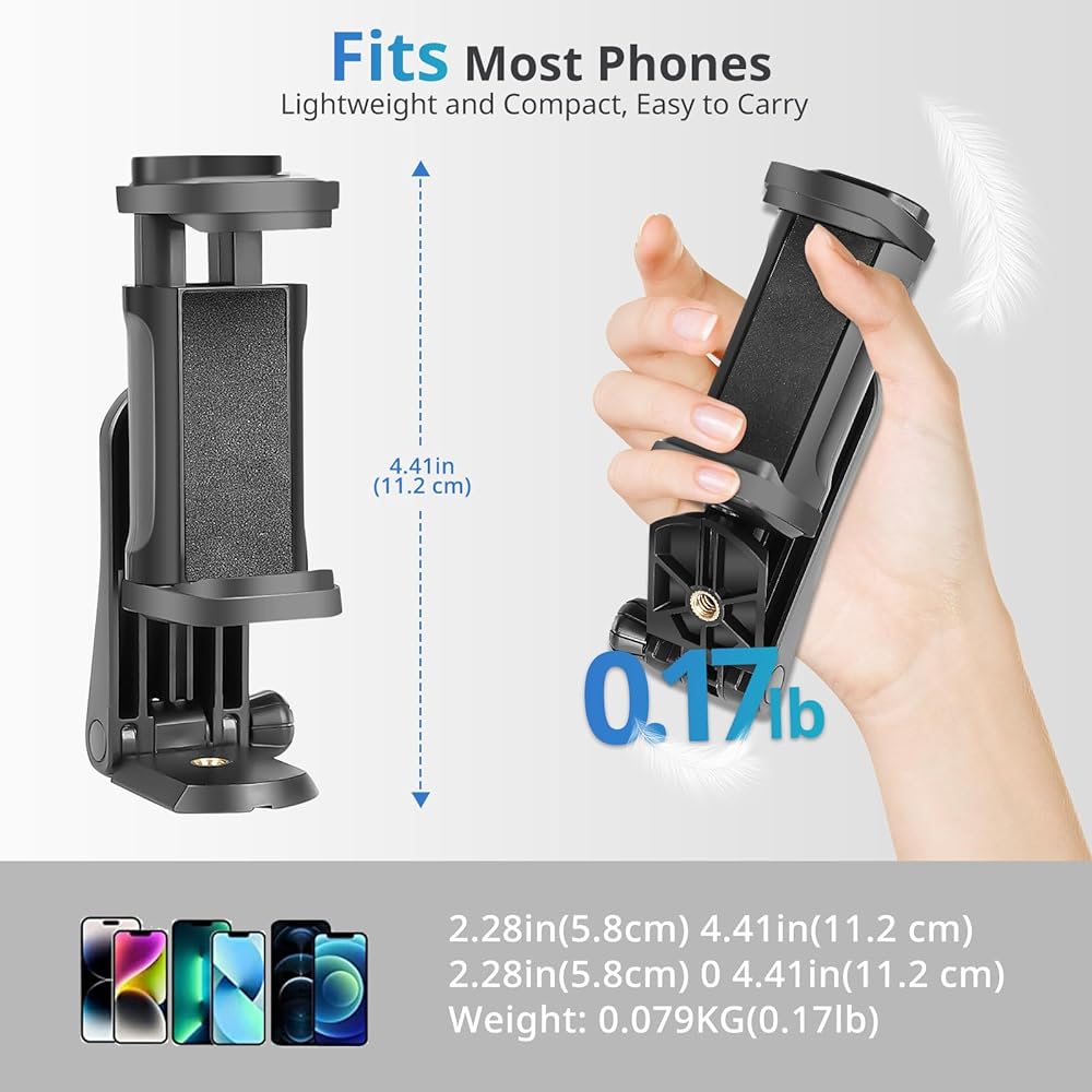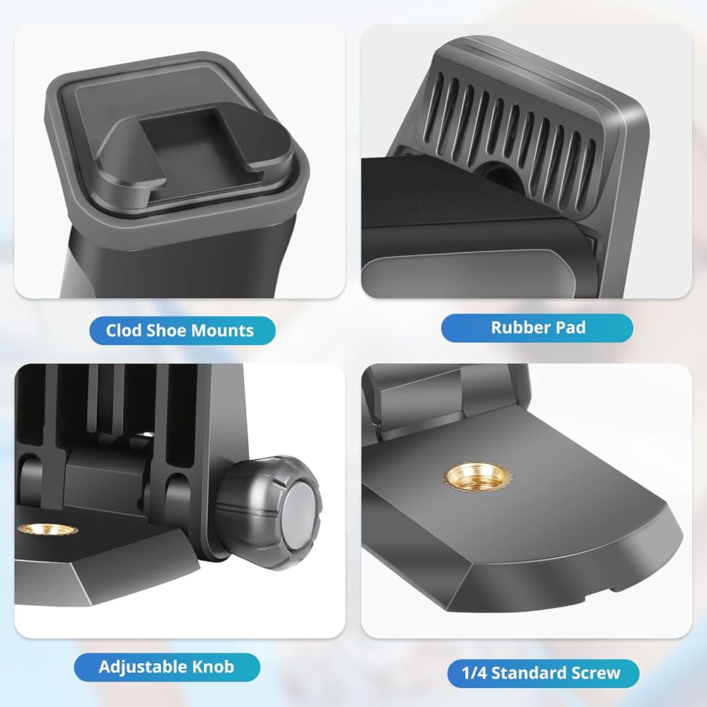 【Side Cold Shoe Design】The side has a cold shoe for easily attaching a fill light or microphone, making it great for Vlogging. Plus, the phone clamp includes a width adjustment button for precise grip control, and the V-shaped groove design keeps your phone securely in place