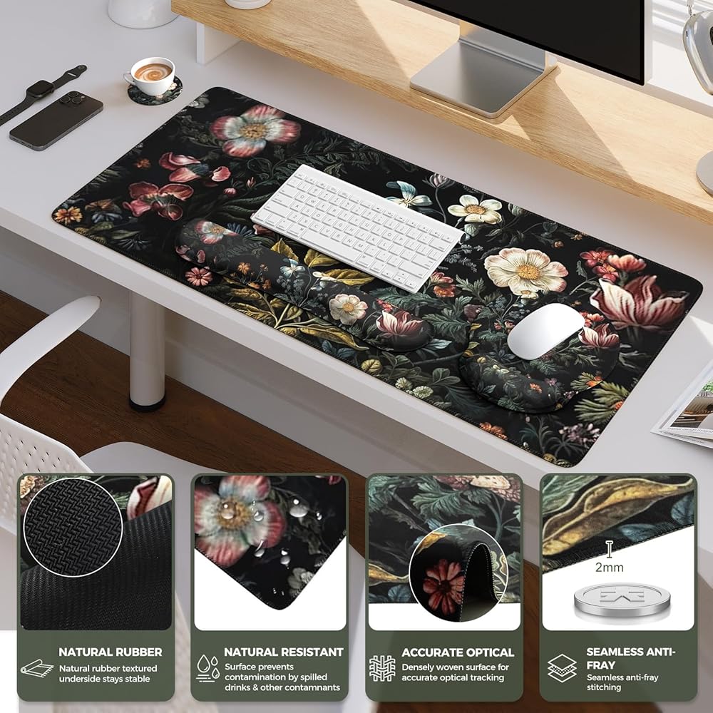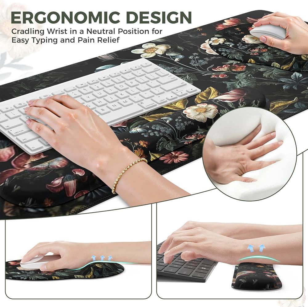 iCasso gaming mouse pad+keyboard pad+mouse wrist support pad+coaster, 4 in 1 union mouse pads for desk enhance your gaming/working experience.