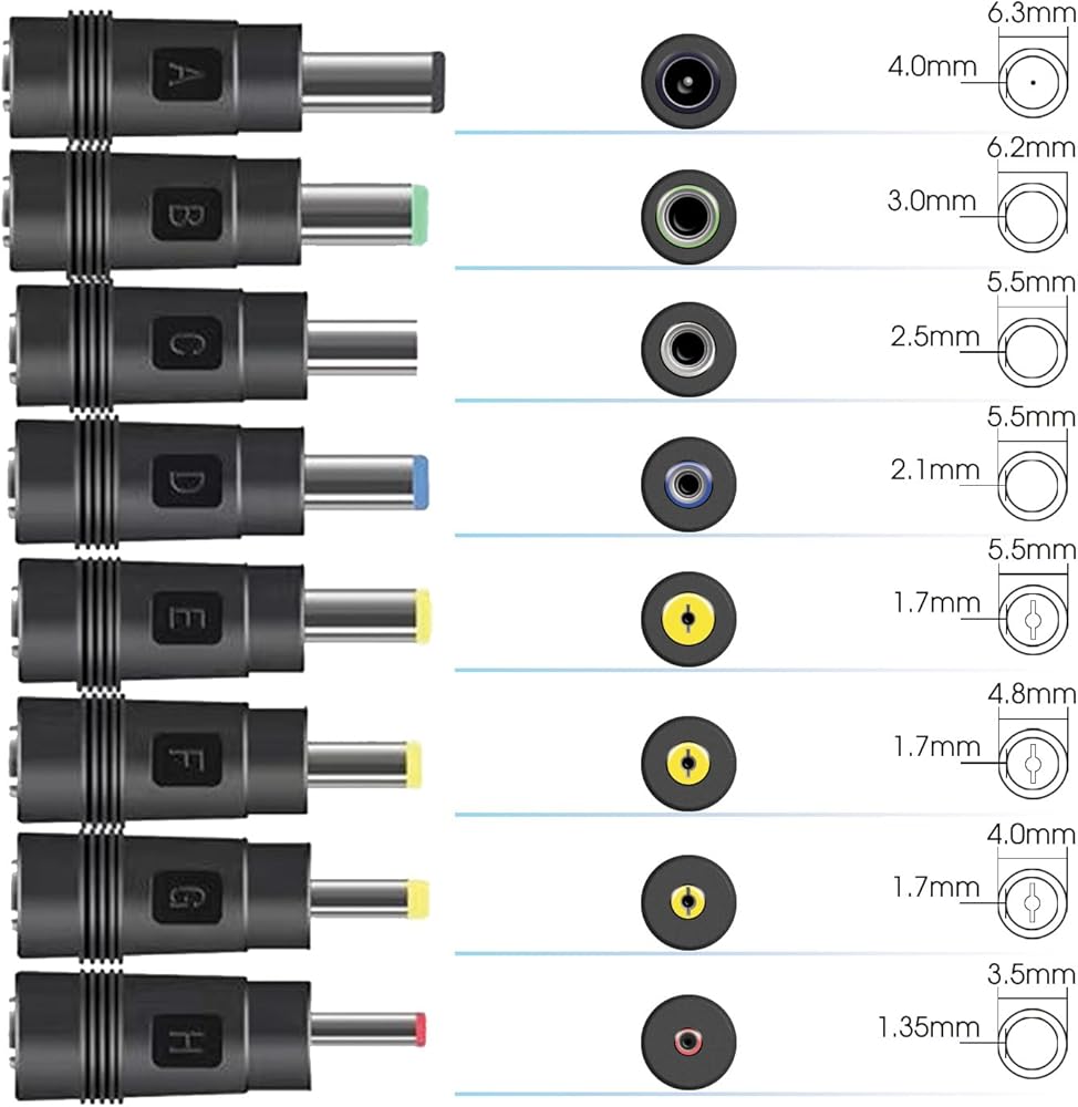 Compatible Connectors: Features a 5.5x2.1mm male barrel connector, ensuring compatibility with a wide range of devices that require this standard power input. Included DC adapter connector set with 8 individual tips further expands its compatibility for other devices like Echo Smart Speaker & Display, webcam, router, mini PC, projector, CCTV, bluetooth Speaker, etc.