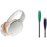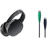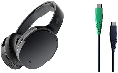 Experience immersive sound with the Skullcandy Hesh ANC wireless over-ear headphones. Featuring Bluetooth 5.0, they provide a wireless range of up to 33 feet and offer up to 22 hours of playtime per charge. The active noise cancellation feature blocks out background noise for focused listening, while the 4-mic digital hybrid active noise cancellation system reduces wind noise. The lightweight, over-ear design has adjustable padded earcups for a comfortable fit. Call, track, and volume controls are conveniently located on the adjustable headband. The skull-themed design comes in a dark blue and green colorway. These noise-cancelling headphones include a 4ft USB-C to USB-C charging cable and are compatible with Amazon Alexa for hands-free voice commands.