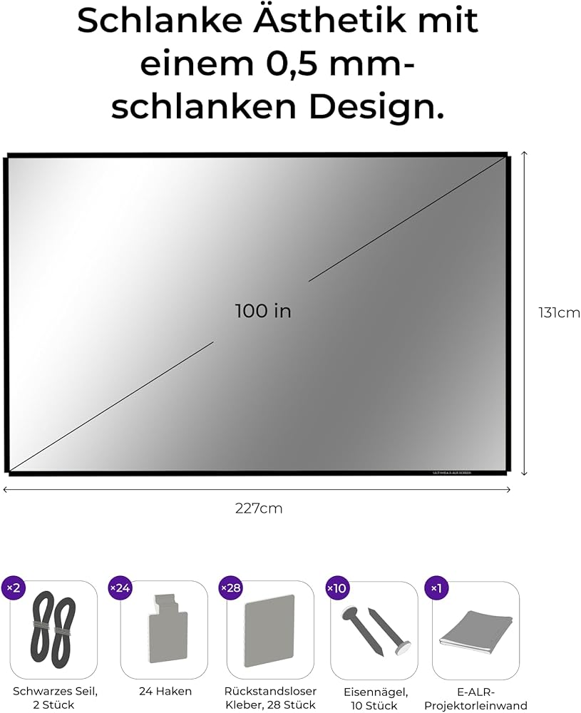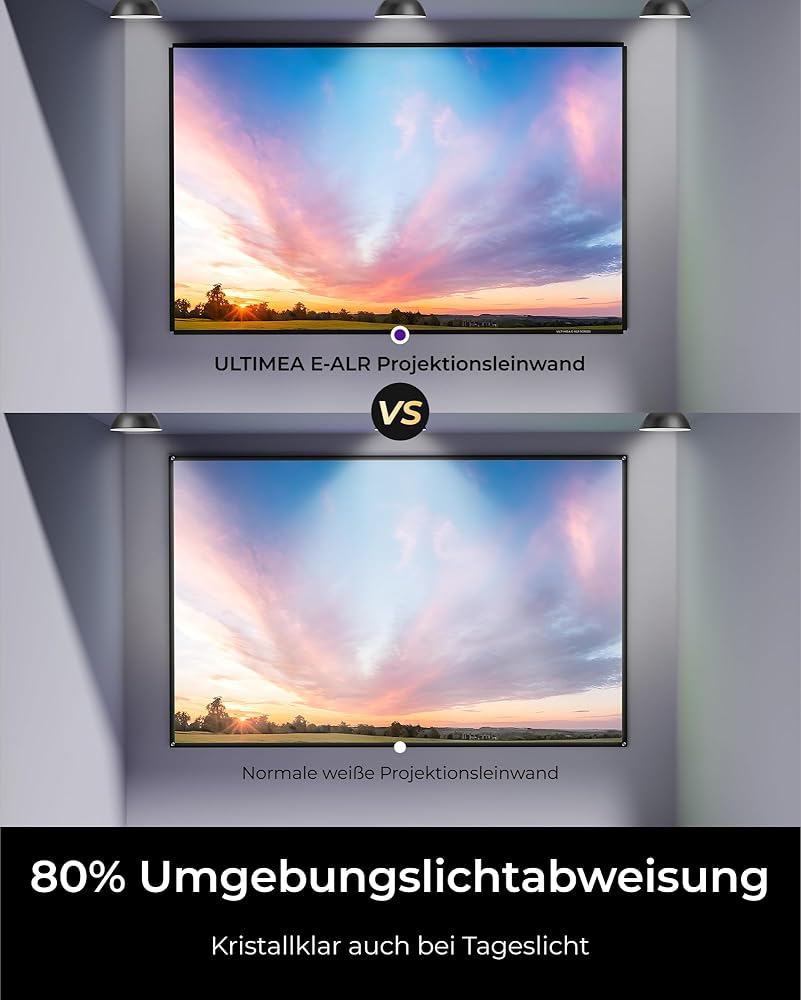 Easy Setup & No Chemical Smell: ULTIMEA E-ALR screens offer two installation options. Mount it on a wall using hooks or adhesive for proper tension, or pack it for camping and hang it effortlessly with strings.