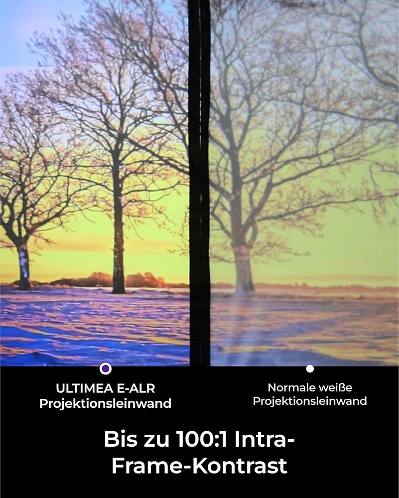 80% Ambient Light Rejection: With E-ALR technology from Ultimea, Photon 100 can reject or filter out unwanted light sources, so they are effective at blocking both ceiling light and daytime ambient light. Even curtains open or lights on, you can get a big screen picture with high contrast and vibrant color saturation. In a well-lit room, keep your eye comfortable even after prolonged viewing.