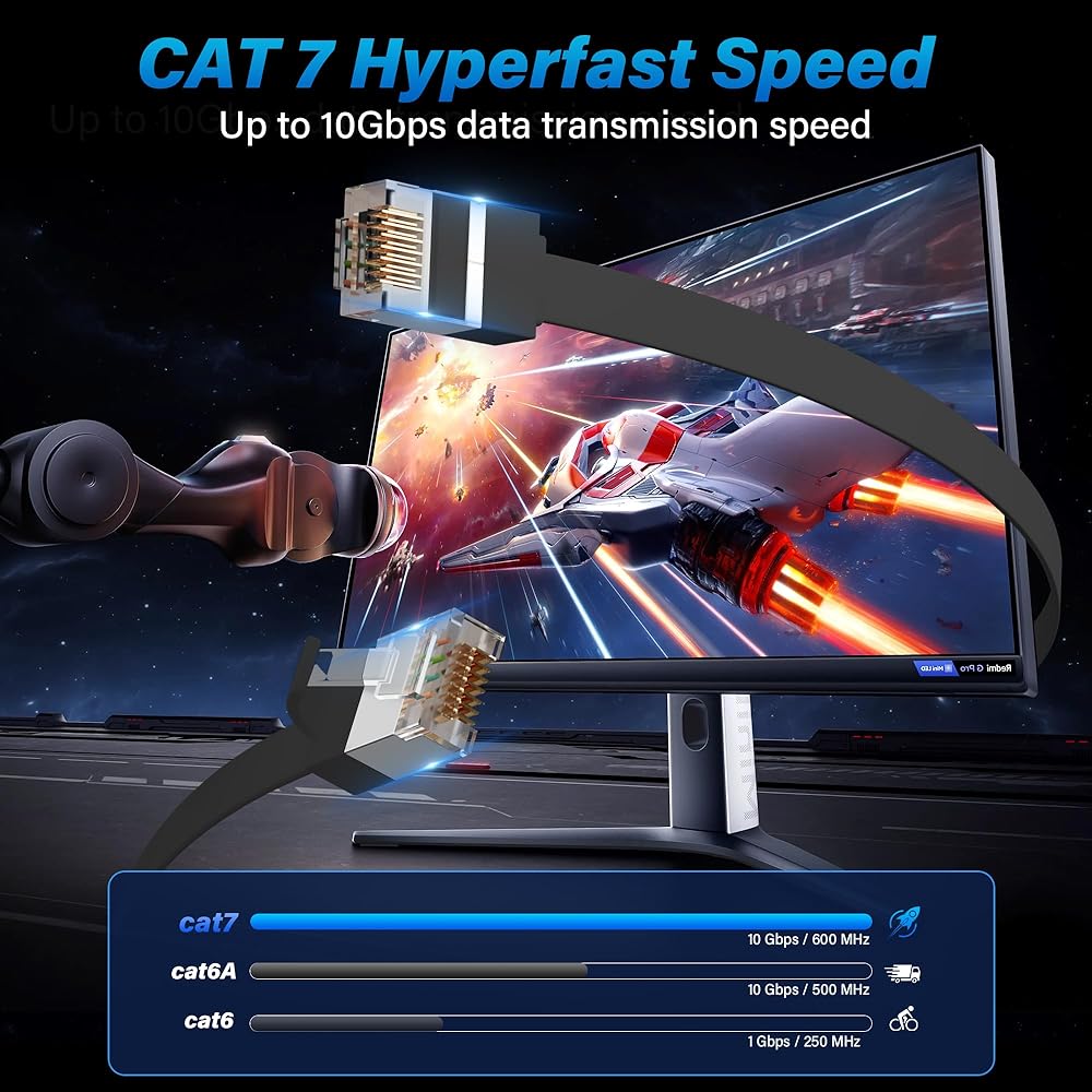 Universal Compatibility: Compatible with a variety of devices, including Wi-Fi routers, gaming consoles (PS4/PS5, Xbox), computers, network media players, and servers. They are also fully backward compatible with Cat6, Cat5e, and Cat5 cables----Whether you're setting up a home office, gaming setup, or data center, these cables provide reliable connections for all your devices.