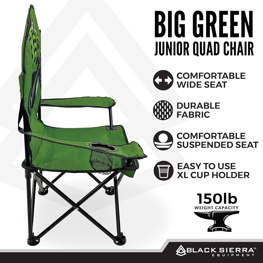 Black Sierra Folding-Lawn Chair for Camping, Beach, Backyard, Sporting Events. for Kids Ages 3-10. Comes with Cup Holder and Carry Bag. Portable-Chair for Travel, Supports 150 Lbs. (Big Green)