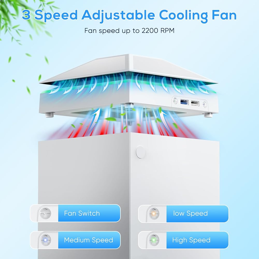 【Efficient 3 Speed Adjustable Fan】The cooler fan for Xbox Series X with a efficient fan is installed on the top, compared to lower and rear fans. the cooling fan draws hot air from the bottom of console to better promote air circulation and effective heat dissipation. The speed can be adjusted in 3 gears (1800/2000/2200 RPM) by an fan button. This cooling fan has a built-in cooling and mute system to effectively prevent your console from overheating and extend the life of your console.