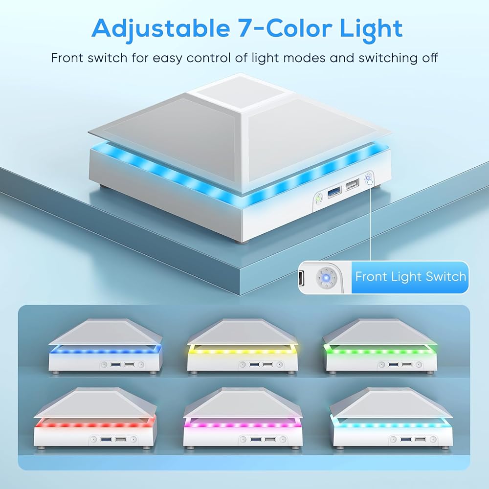 【Adjustable 7-Colour Light Bar】The fan dust stand for Xbox Series X with unique RGB light bar design. The light strip contains 7 types of colour changing effects, divided into magical colour effects and six pure tone effects. With independent touch switch, can change or turn on / off. Short press the switch to cycle through seven light effects and turn off light effects. Create a very cool gaming environment for you.