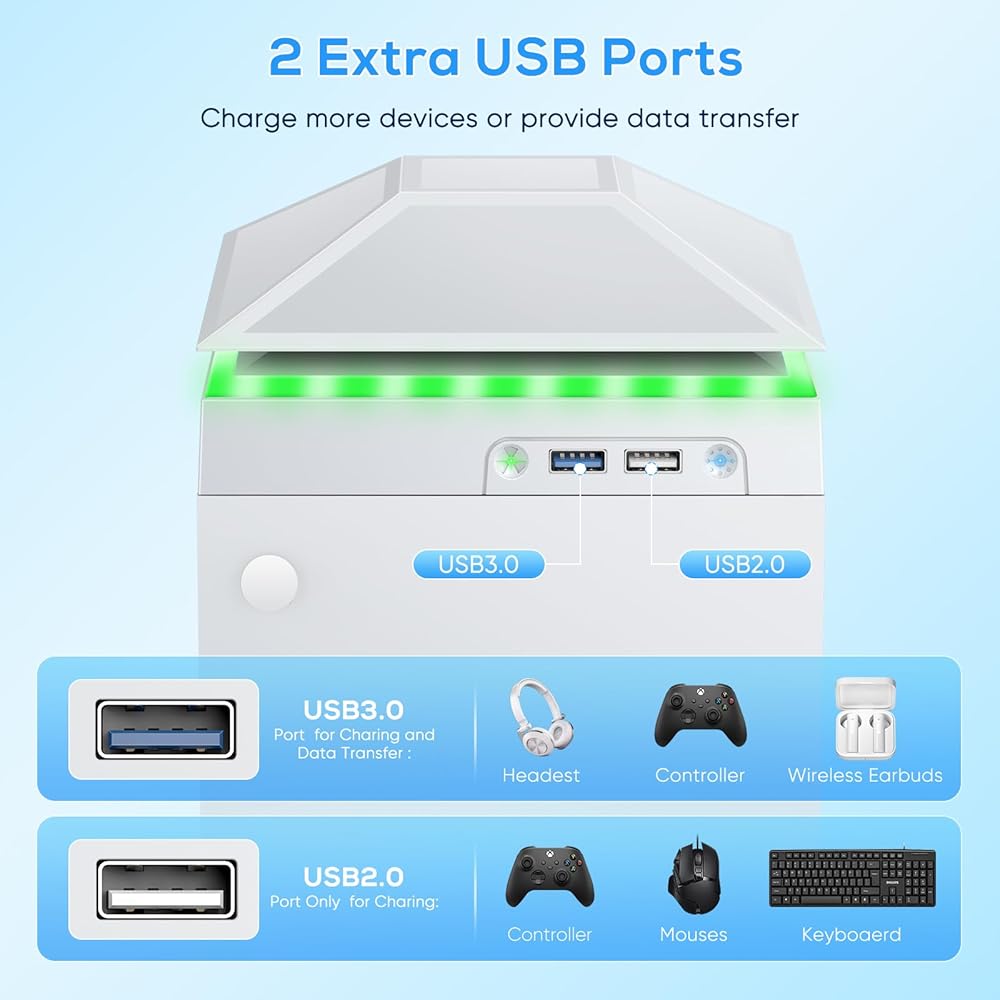 【Upgraded RGB Cooling Fan Perfect for Xbox Series X】This Fastsnail XSX fan perfectly combines top cooling fan, RGB light strip, additional USB ports, dust cover and rubber plugs, using the same white as the console, makes the console and the fan are integrated, with 7 RGB lighting modes, USB data transmission and USB charging in one design. The cooling fan for xbox series x can protects your console from overheating and keeps dust away, you can enjoy the gaming better.