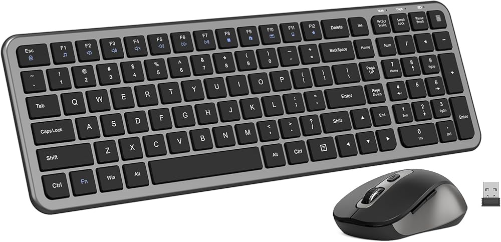Silent Keyboard and Mouse - All keys on the office keyboard use scissor structure switches, making the keyboard ultra-thin, lightweight, responsive, noise free, typing soft touch and comfortable. Silent cordless mouse keyboard fits office, home, library, dormitory, and so on. Never worry about disturbing others to rest while working or playing.