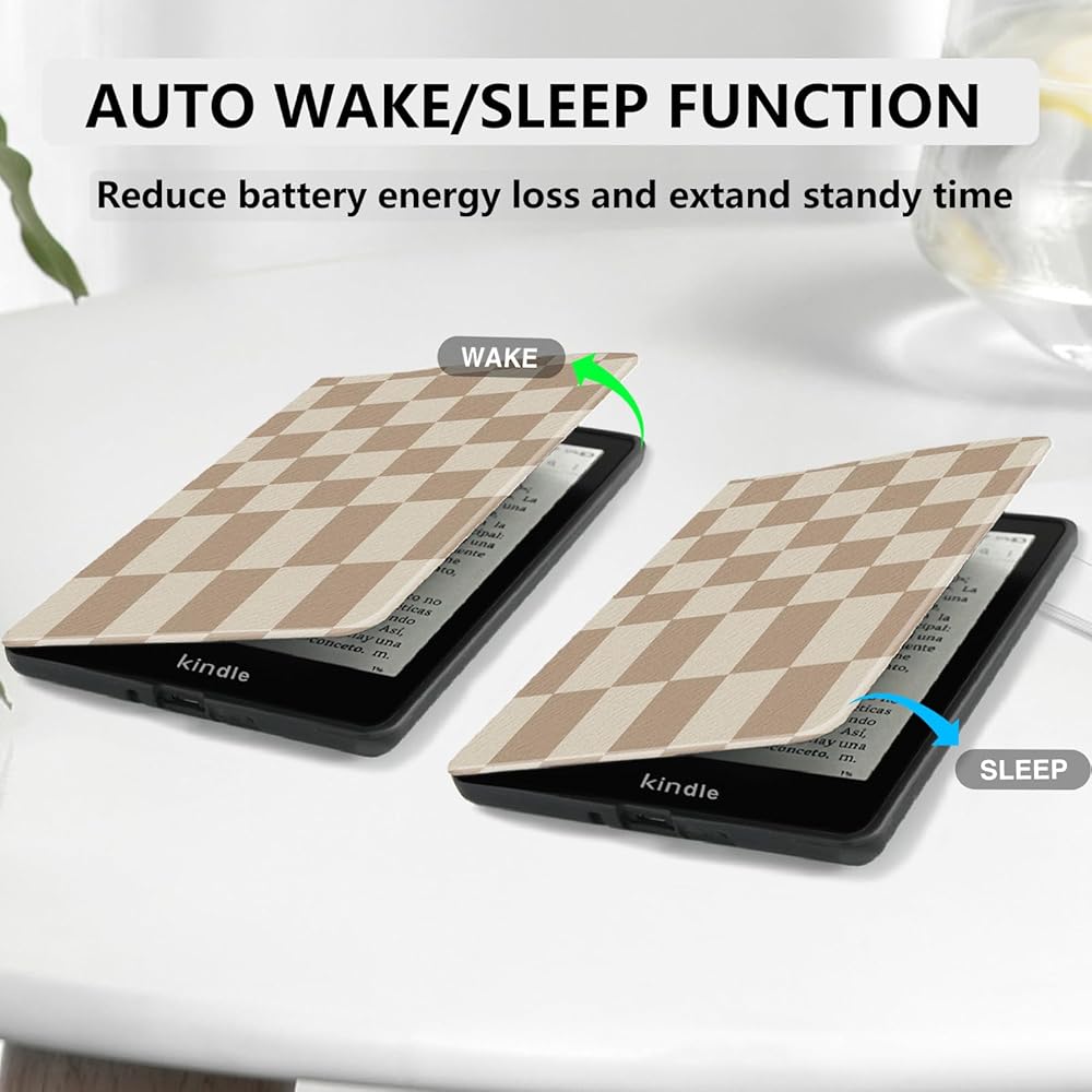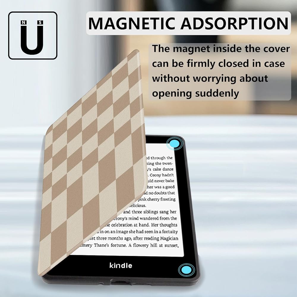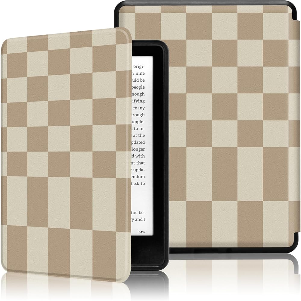 MOROCK Case for All-New 7" Kindle Paperwhite (12th Generation-2024 Released), Fits Kindle Colorsoft Paperwhite Signature Edition, Lightweight PU Leather Cover with Auto Wake/Sleep, Coffee Chessboard