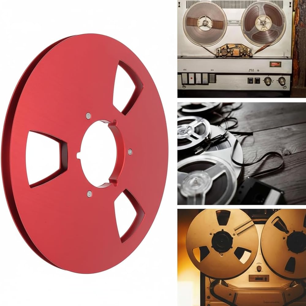 10.5 Inch 1/4 Open Reel Audio Takeup Spool, Red 3 Hole Aluminum Empty Tape Reel for Professional Sound Recording Studio Equipment Vintage Audio Restoration