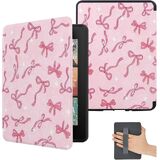 Cover for All New 7 Inch Kindle Paperwhite 12th Gen 2024/ Kindle Colorsoft Signature Edition Cute Case with Hand Strap, with Flower PU Leather for Girl Auto Wake/Sleep Red Floral Wildflower
