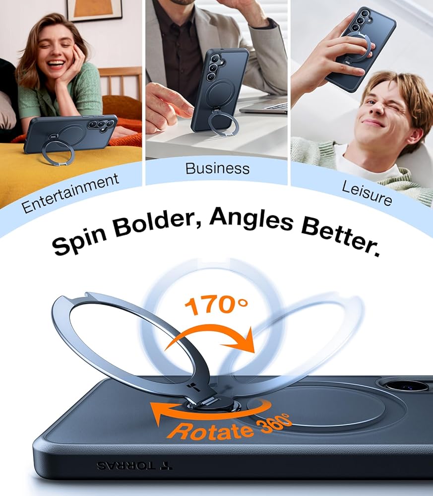 🏆[Pioneering 360° Spin Stand] Can't adjust the horizontal position of the ring stand case? Spin stand offers the perfect solution! With flexible angles from vertical to horizontal, the built-in kickstand offers various positions. The Samsung Galaxy S24 ultra case with stand undergoes over 30,000 open/close tests while bringing a new level of freedom using a stand to your phone experience