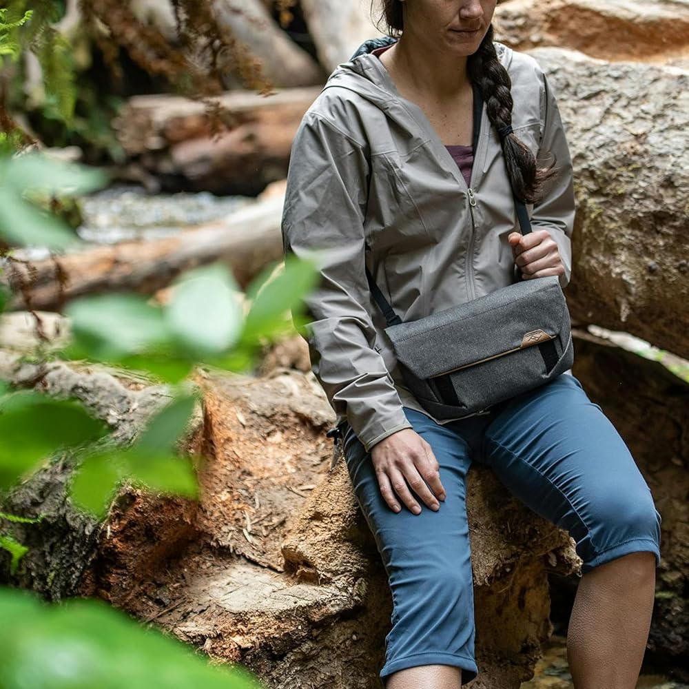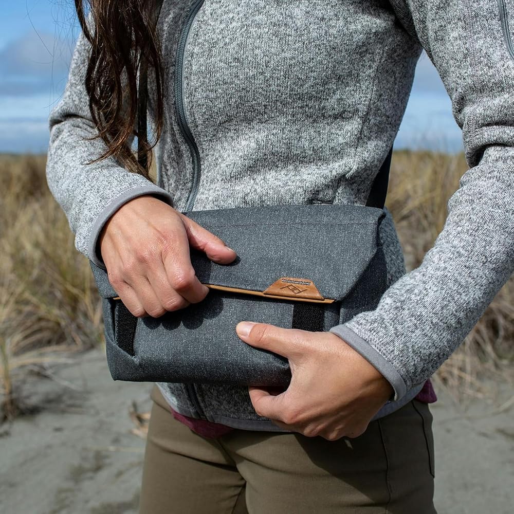 Field Pouch is our only organizer that is truly 2 bags in 1: a minimalist carry-all sling bag, and compressible in-bag organizer. A roll-top opening grants easy access, massive expansion (it doubles in volume), and quick compression to eliminate unused space. Inside you'll find a thoughtful layout of stretch pockets and zip pockets to keep cords, cards, batteries, keys—even small lenses or camera bodies—organized and not jingling around. Included ultralight adjustable strap enables cross-body or shoulder carry, and integrated belt loops allow for waist carry. For a lightweight shooting setup, attach a Capture Clip (sold separately) and keep your camera outside the pouch—keep your rig at-the-ready, and increase storage space for accessories. All fabrics are recycled and Bluesign approved, including the soft internal felt liner and the 400D double poly-coated weatherproof nylon canvas shell. Now in its 2nd generation, the Field Pouch V2 features tons of usability optimizations like an included strap, improved pocket layout, and dual Capture attachment points. Updated patterning integrates loads of functionality into single, sweeping seam lines for a timeless, minimal look.