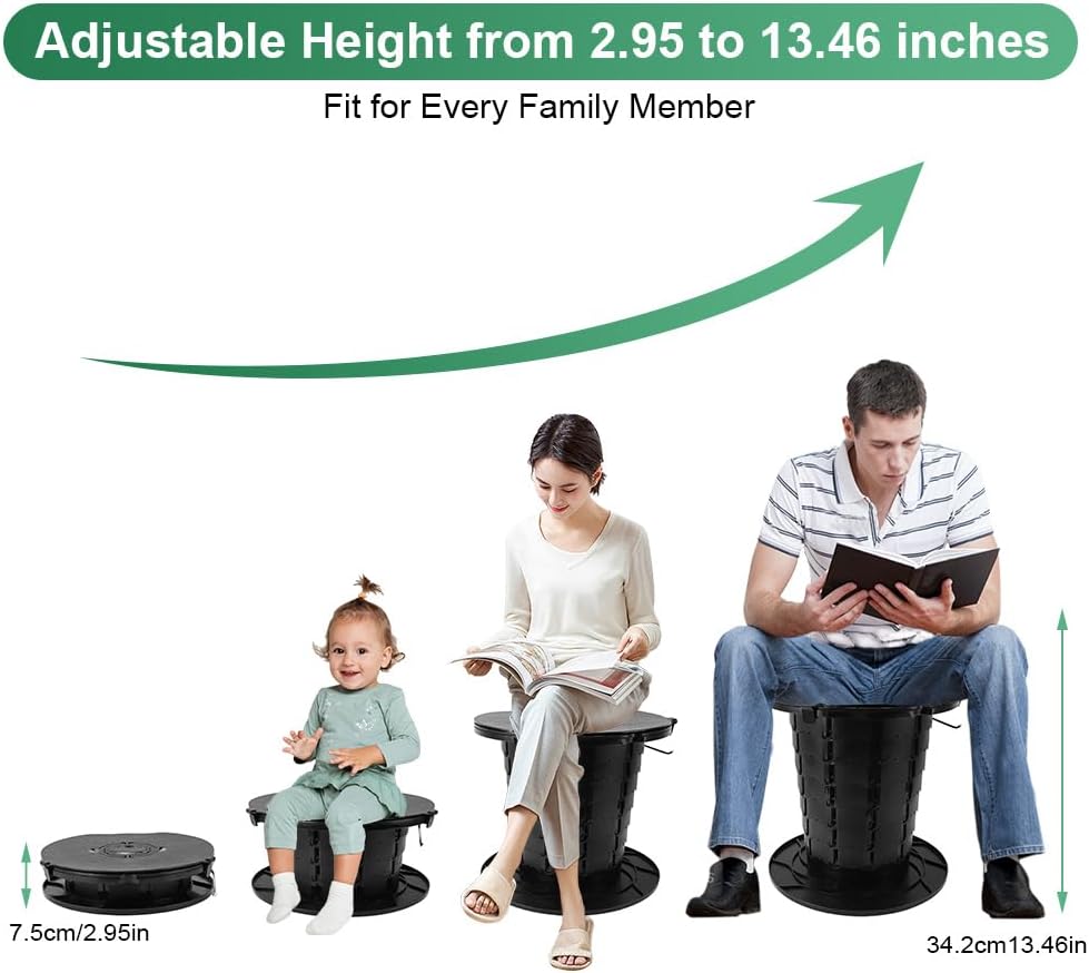 Adjustable Height: The travel toilet can be adjusted to any height between 3 inch and 13.58 inch, catering to individuals of all ages and genders, ensuring comfort for everyone.