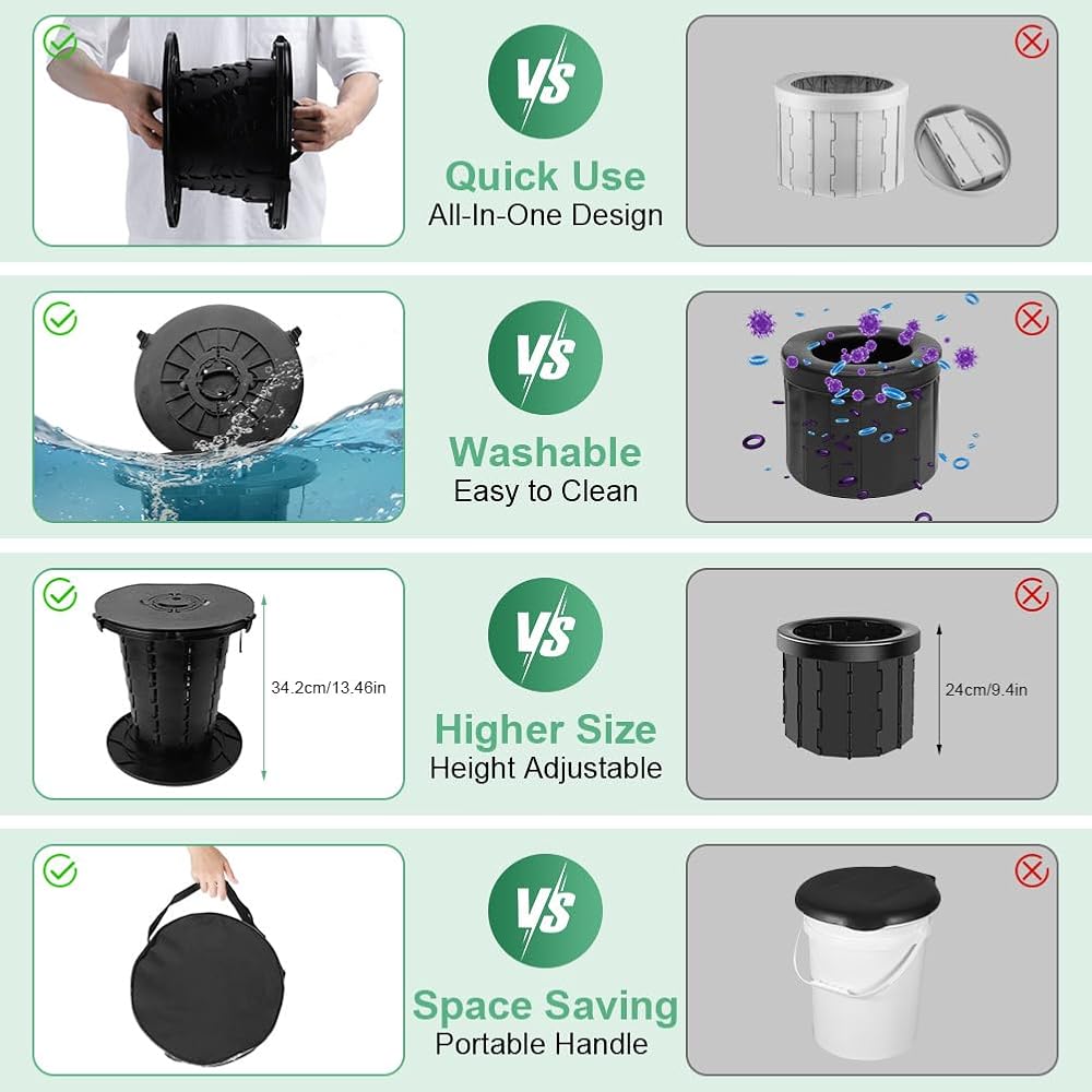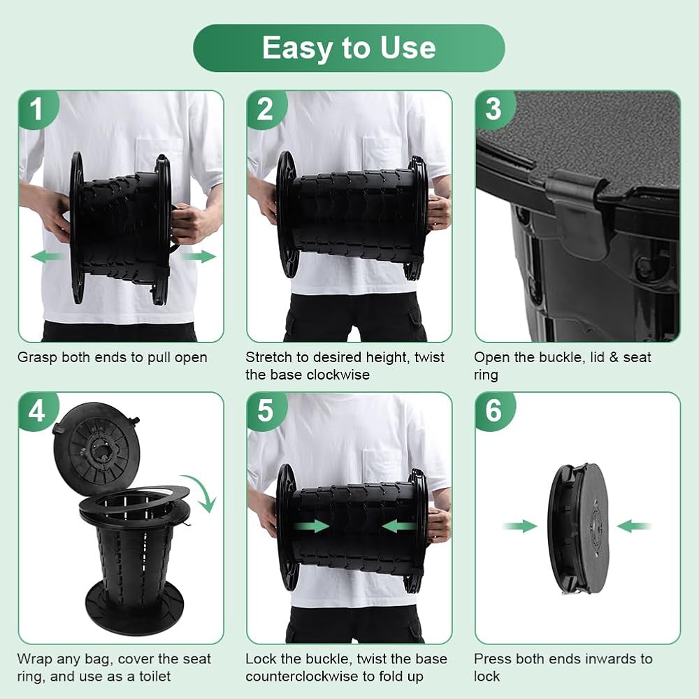 Compact and Portable Design: The retractable design makes this foldable camping toilet compact and lightweight, excellent for outdoor use without taking up much space.