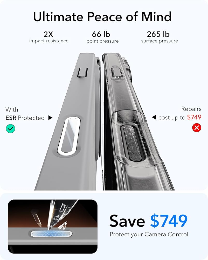 Military-Grade Protection: shock-absorbing Air Guard corners combine with raised screen edges and Camera Guard to ensure test-certified protection against drops, bumps, and scratches