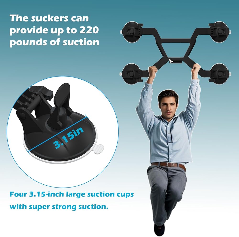 【Suction Cup Design】Four 3.15 "large suction cups, the suckers can provide up to 220 pounds of suction, can securely attaching to any smooth, non-porous surface such as counjps, glass, and metal.