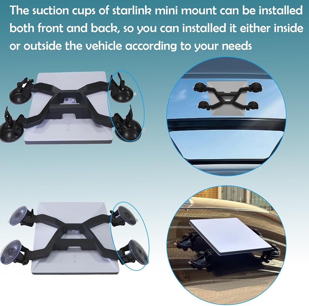 【Multi-scene Use】The suction cups of starlink mini mount can be installed both front and back, so you can installed it either inside or outside the vehicle according to your needs. You can also install it on the windows of your home.