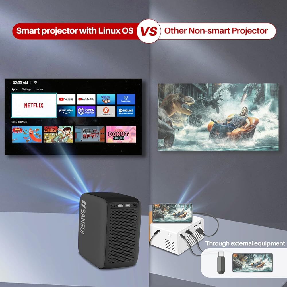 【Dust Proof & Versatile Connectivity 】Engineered with a fully-sealed optical engine, built with a long-lasting lamp that offers up to 50,000 hours ,using for years to come without having to worry about replacing the lamp.Smart projector is compatible with a wide range of devices, including laptops, tablets, smartphones, gaming consoles, and USB drivers.