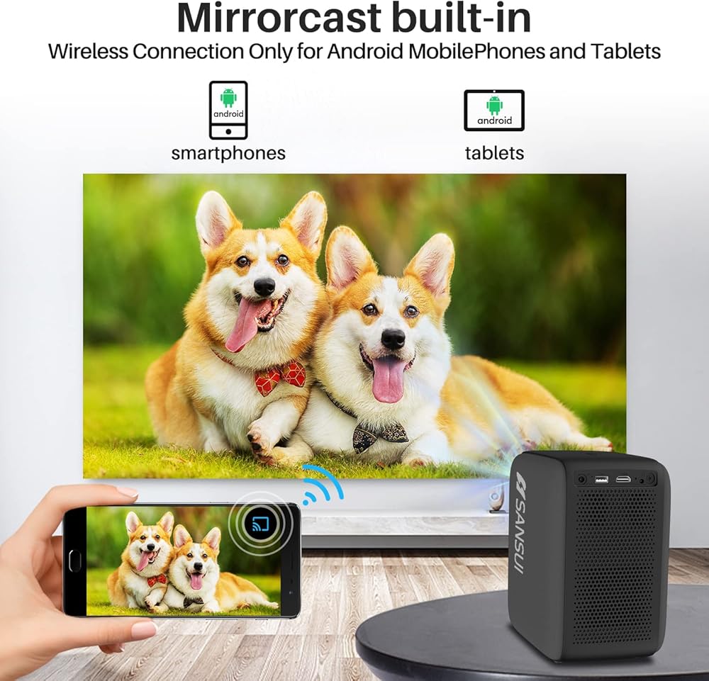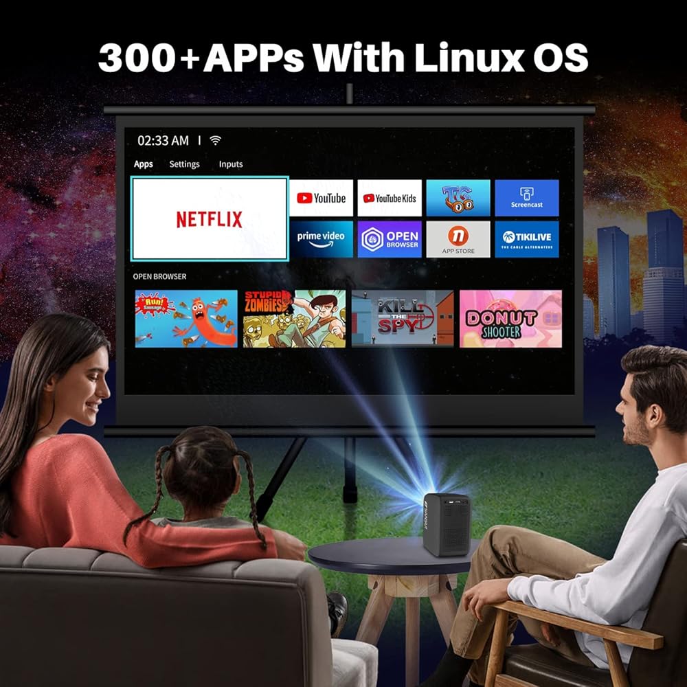 【Licensed by Netflix & 300+ Apps】Enjoy endless entertainment with this Linux-based home theater projector that features over 300 built-in apps, including popular streaming services like Netflix, YouTube, and Spotify. With Mirrorcast, you can effortlessly stream media from your Android devices to the wifi projector for a seamless viewing experience.
