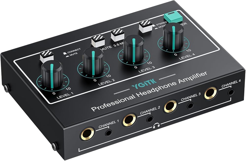 【4 Channels & 8 Output Headphone Amp】The headphone amp has 4 channels and is equipped with 4X 1/4" and 4X 1/8" stereo headphone TRS output connector jack, which support up to 8 earphones output at the same time. Each channel is designed with a volume knob. When you and your friends are sharing the audio source, each channel can independently control the volume of their headphones.