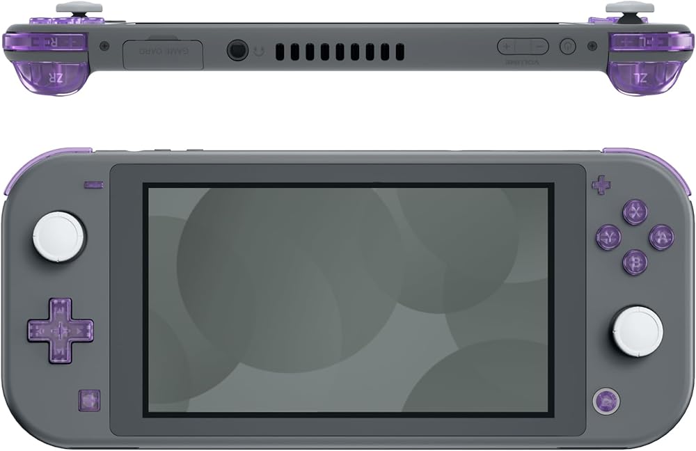 eXtremeRate Clear Atomic Purple Replacement ABXY Home Capture Plus Minus Keys Dpad L R ZL ZR Trigger for Nintendo Switch Lite, Full Set Buttons Repair Kits with Tools for Nintendo Switch Lite