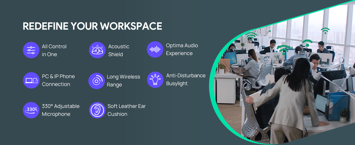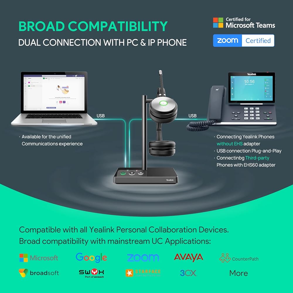 Yealink WH62 Wireless DECT Headset Teams Zoom UC Certified, Work for PC Computer Laptop Mac, Office Desk Phone Softphones VoIP Telephones (WH62 for 3rd-Party Phone)
