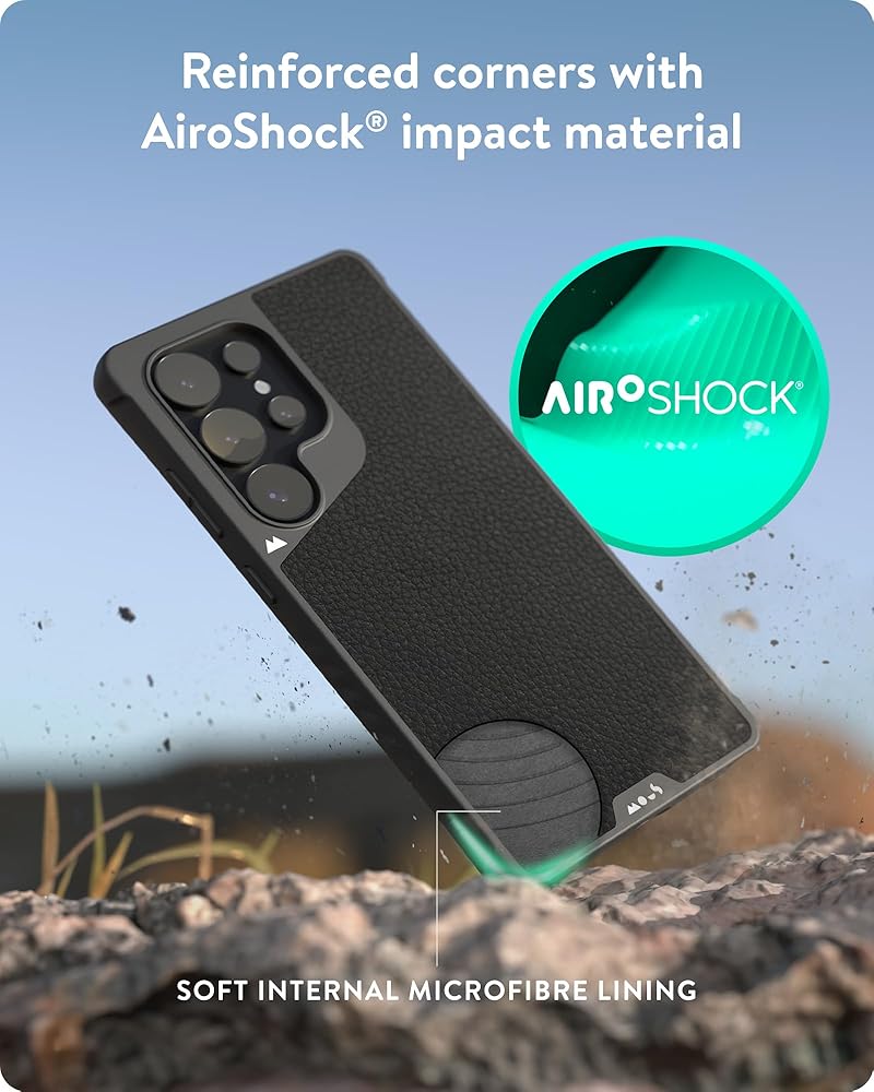 EXTREME SHOCK AND DROP DEFENCE – Made with impact-absorbing AiroShock technology, reinforced corners and tough, rigid materials to protect your Samsung Galaxy S25 Ultra from drops and shocks