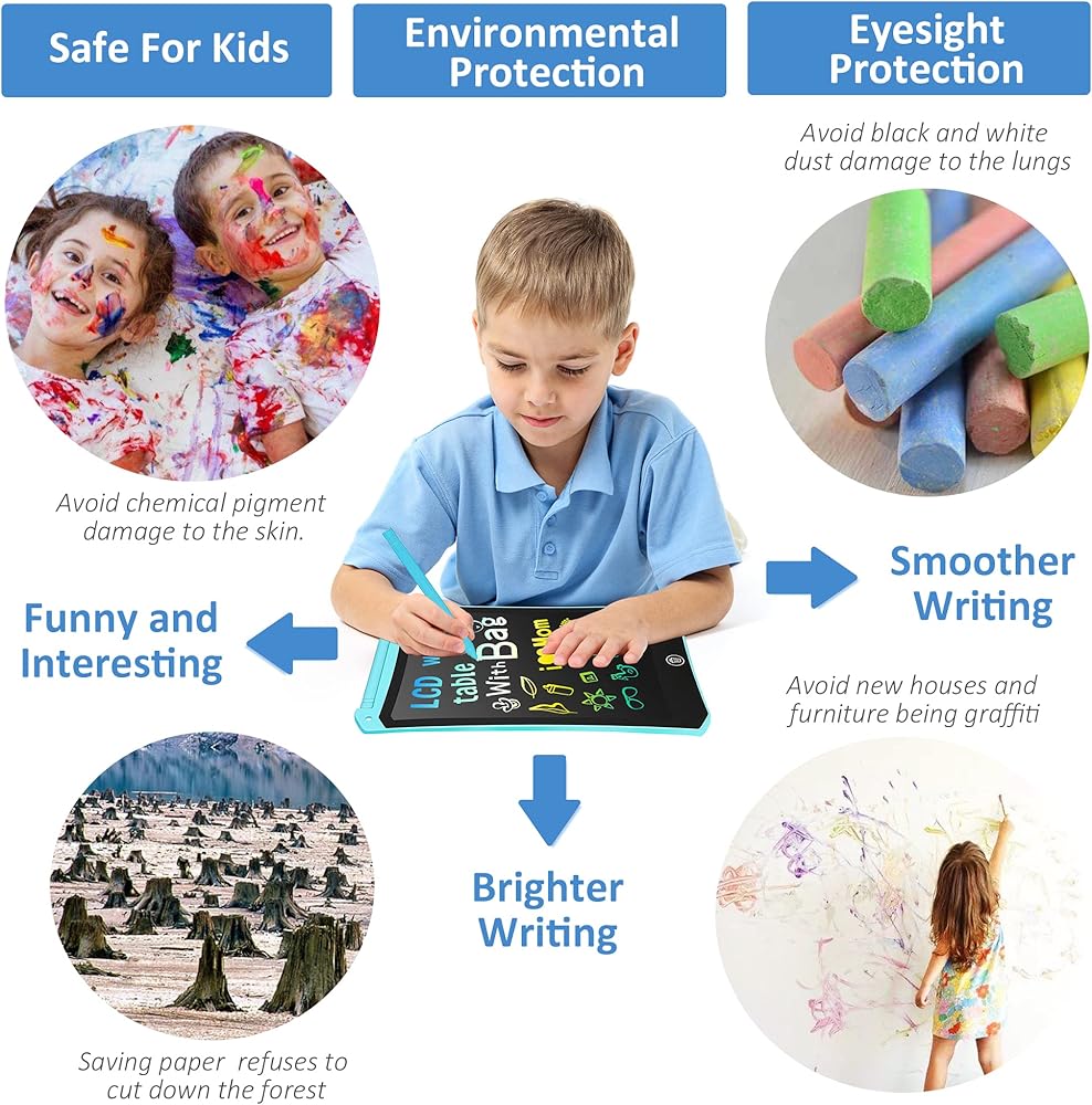Environmentally friendly, durable and light: This LCD writing tablet with a one-key clear button can be erased and rewrite over 100,000 times. A graffiti board can be saved in the environment and can also help you save a lot of money. The writing board is designed with LCD + ABS material to be safe, non-toxic and anti-drop. Ultra-light shell (3.95 oz), easy to carry.