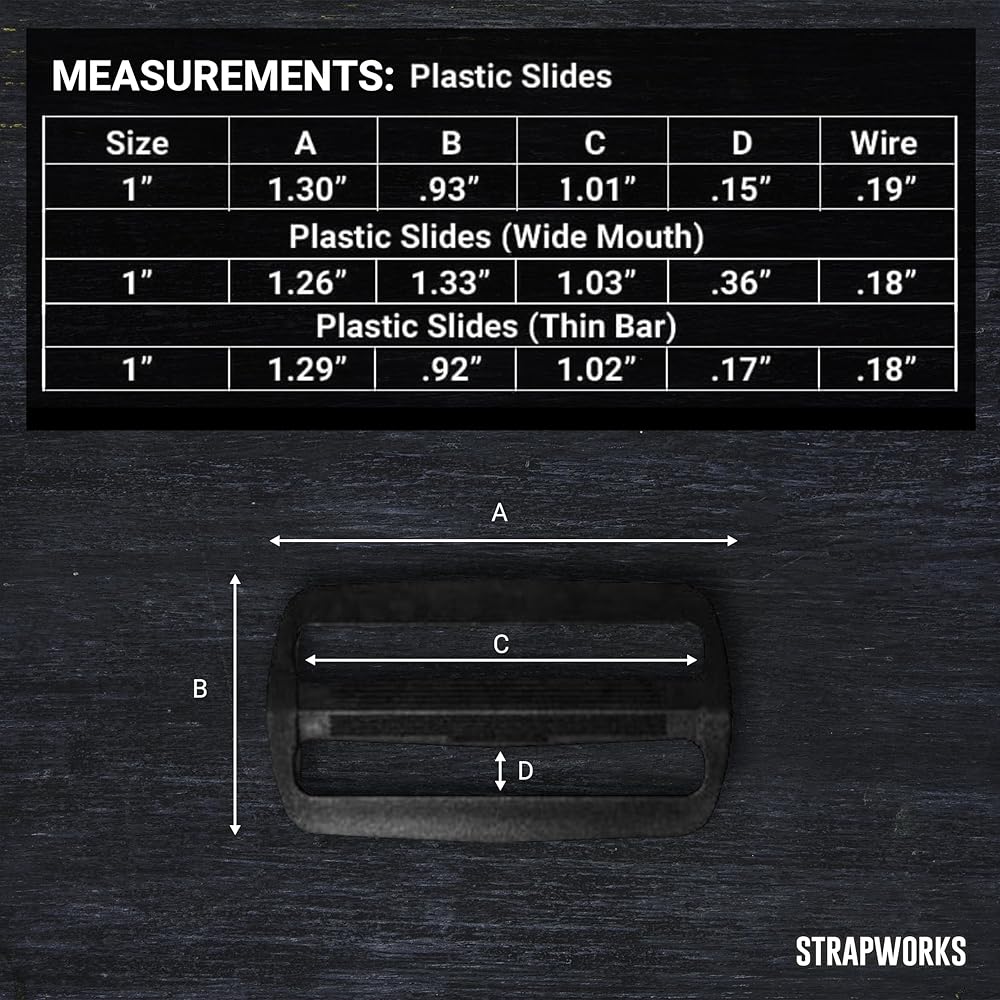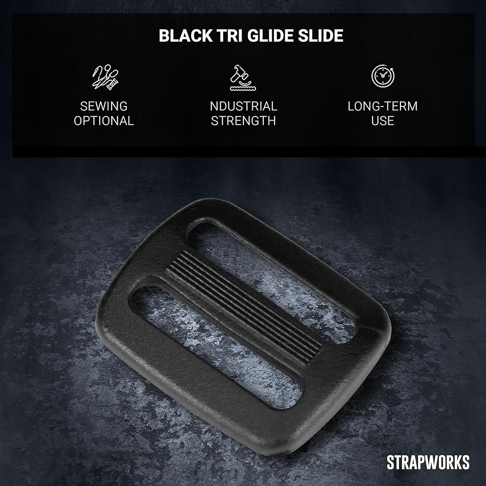 Strapworks Plastic 1 Tri-Glide Slides offer an easy solution to repair broken straps and slides. Our tri-glide slides are compatible with a wide variety of materials, such as polyester webbing, nylon webbing and polypropylene webbing. Designed to accommodate strapping of 1 inch or less depending on your project, the webbing will slide right through for a secure fit.