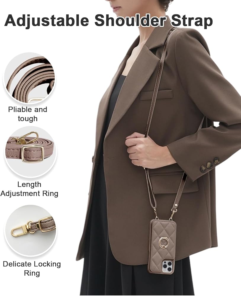 Adjustable Lanyard: Wallet crossbody case for iPhone 15 Pro Max, the crossbody strap is 50 inches in length, you can adjust the length according to your usage habits, the strap is made of high quality leather stitching, comfortable and soft to touch