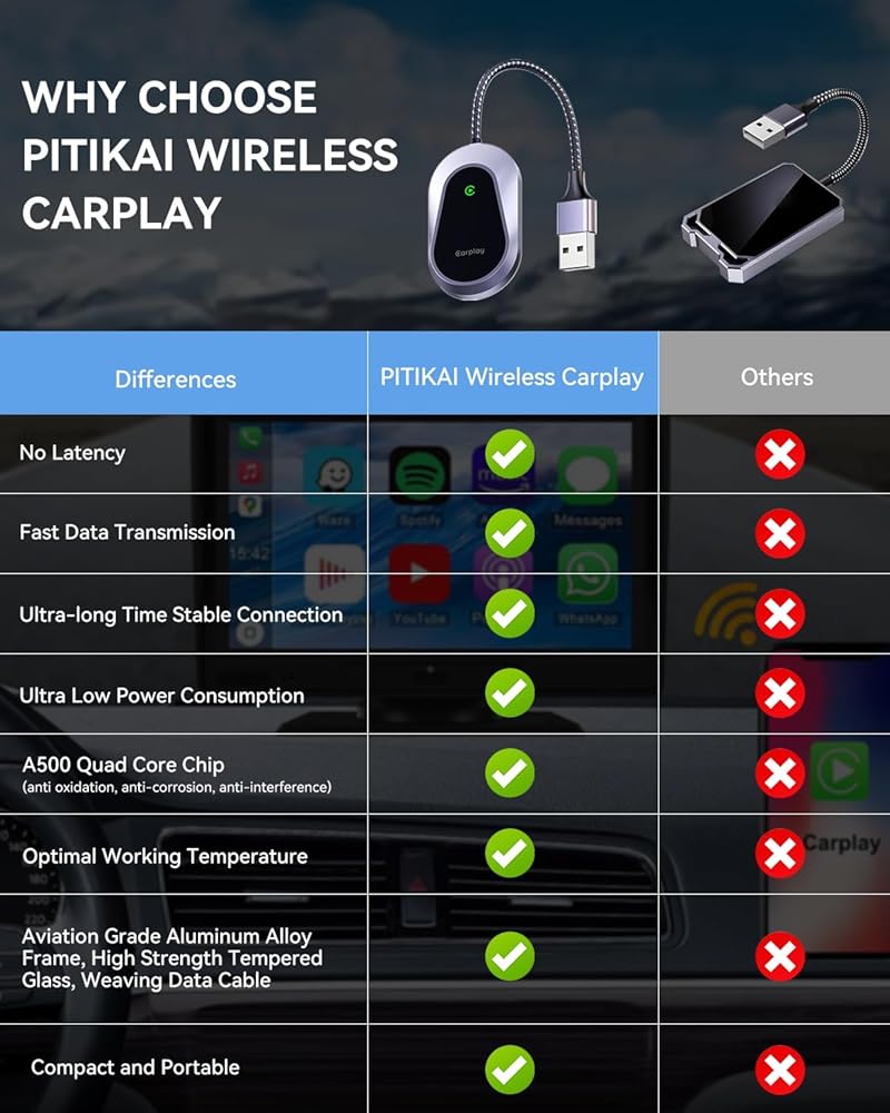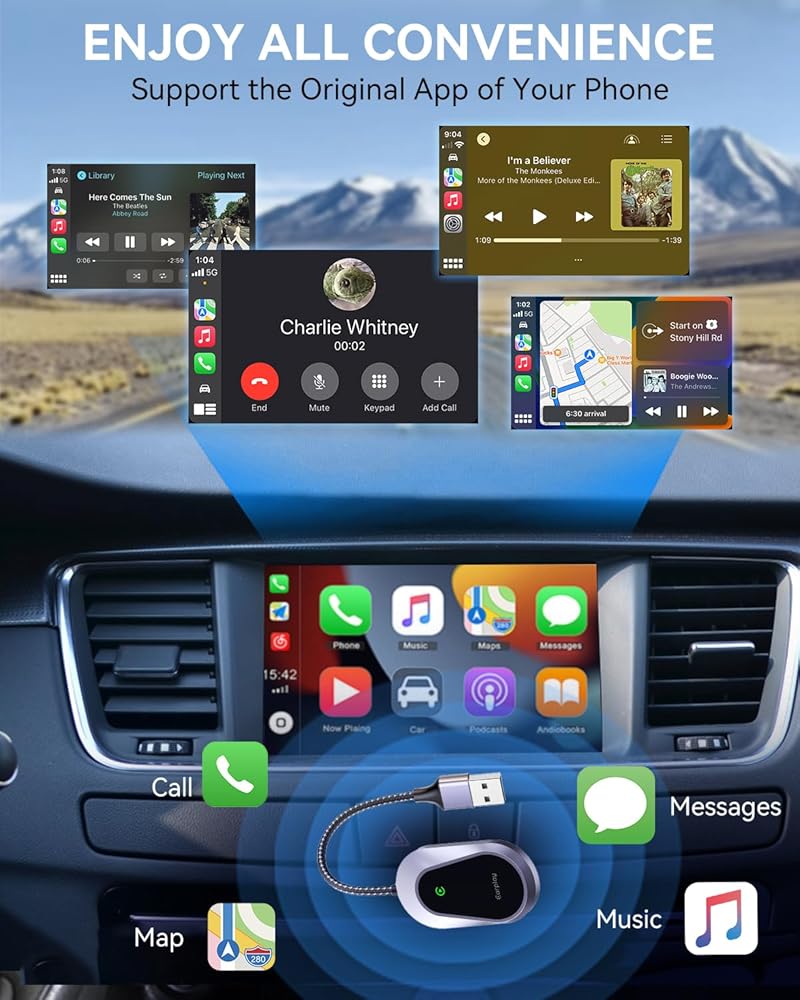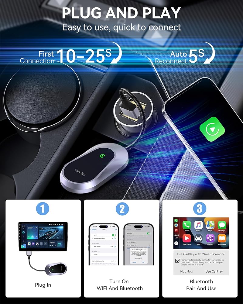 Intelligent Experience, Plug and Play: Enjoy the convenience of wireless carplay without compromising your car's original sound system, easily convert wired to wireless, reducing cable clutter and creating a tidy, user-friendly environment, access smartphone navigation, music, siri, and more directly on your car screen, all while maintaining the original sound quality