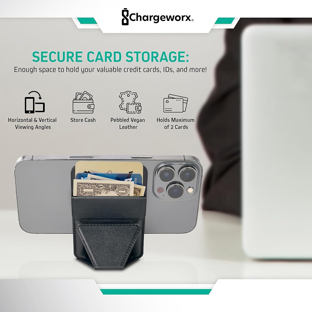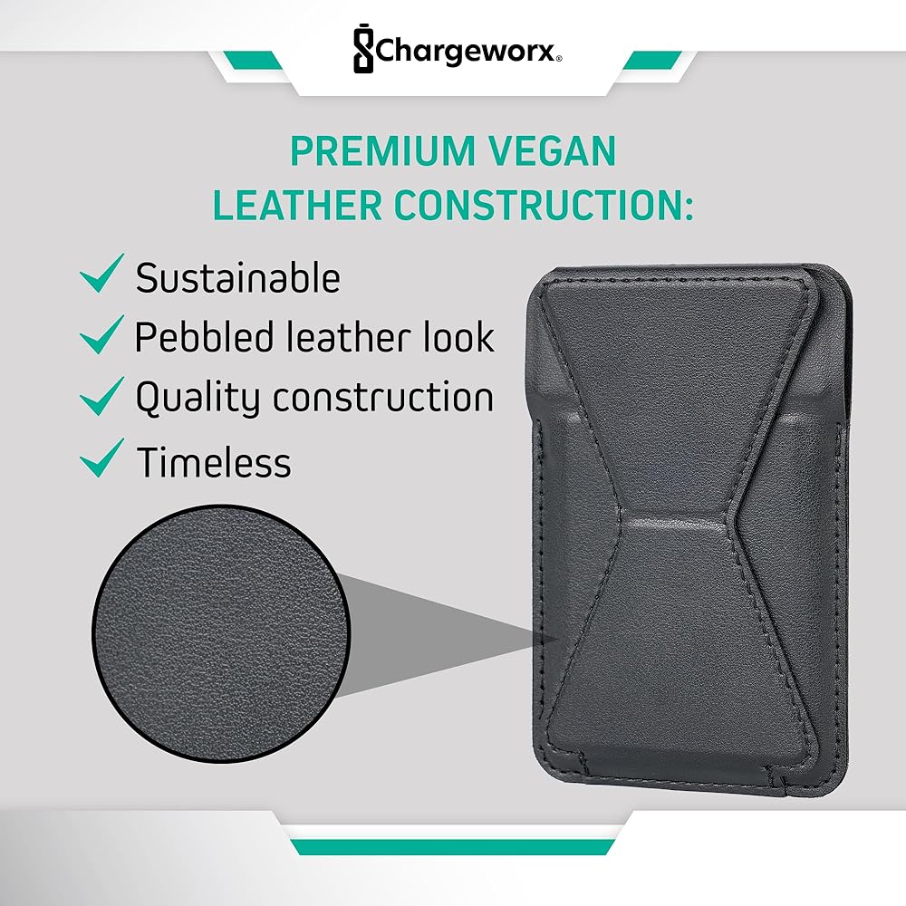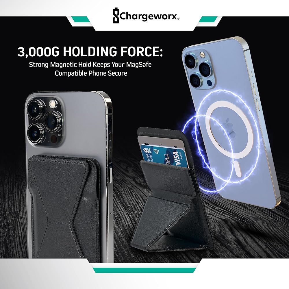 CHARGEWORX Magnetic Wallet for iPhone MagSafe, Slim Card Holder Phone Stand with Strong Magnet Grip, Vegan Leather Minimalist Wallet Case for iPhone 17 16 15 14 13 12 Pro Max Mini – Black