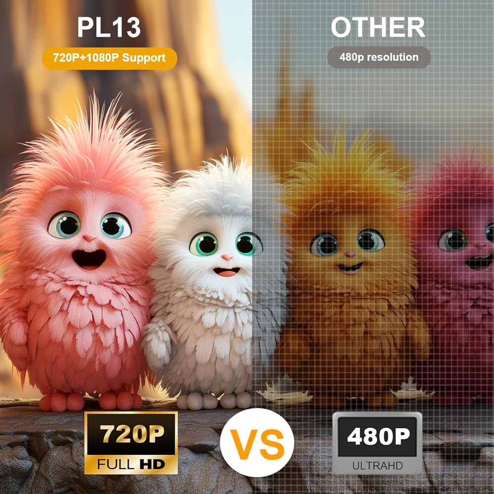 【Compact and Portable】The mini video projector is compact and portable, you can carry it in your pocket or bag. Even children can hold it easily. You can enjoy movies, videos and games at home or outdoors on the patio, travelling, camping and other locations