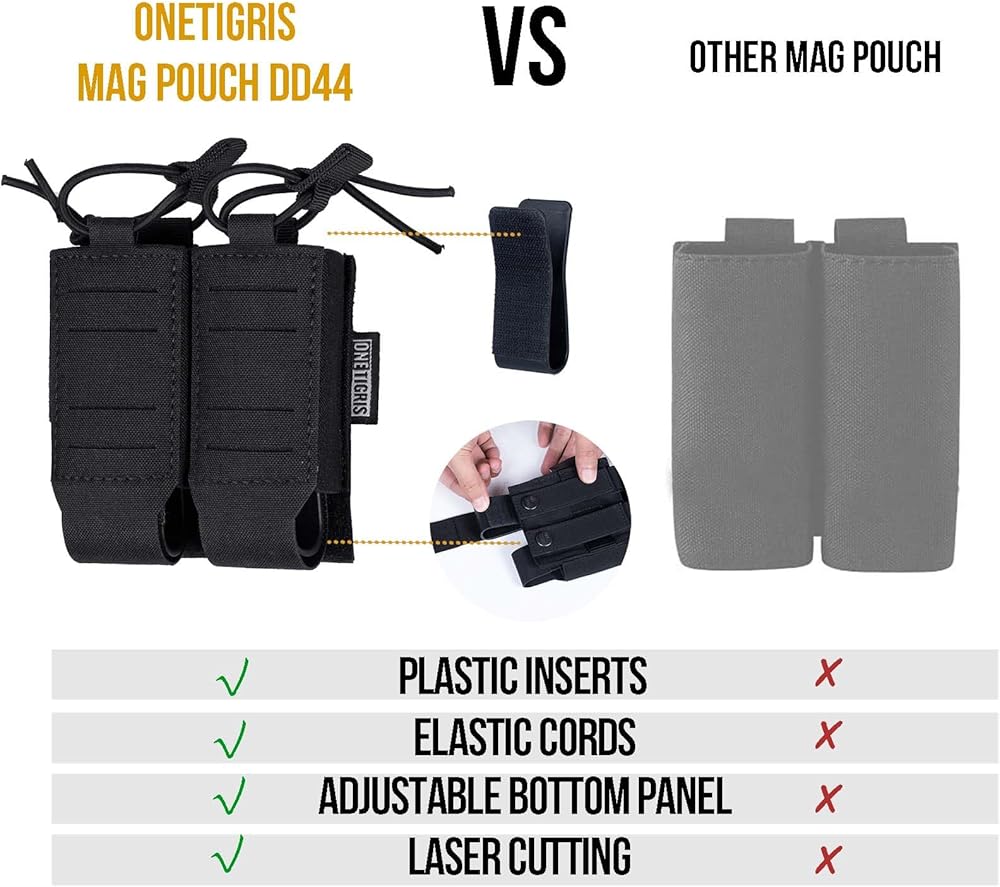 RAPID RESPONSE - OneTigris molle pouch DD44 is constructed with high-strength laminated 500D nylon and two plastic inserts to securely hold your s in place, making it faster to remove your accessories