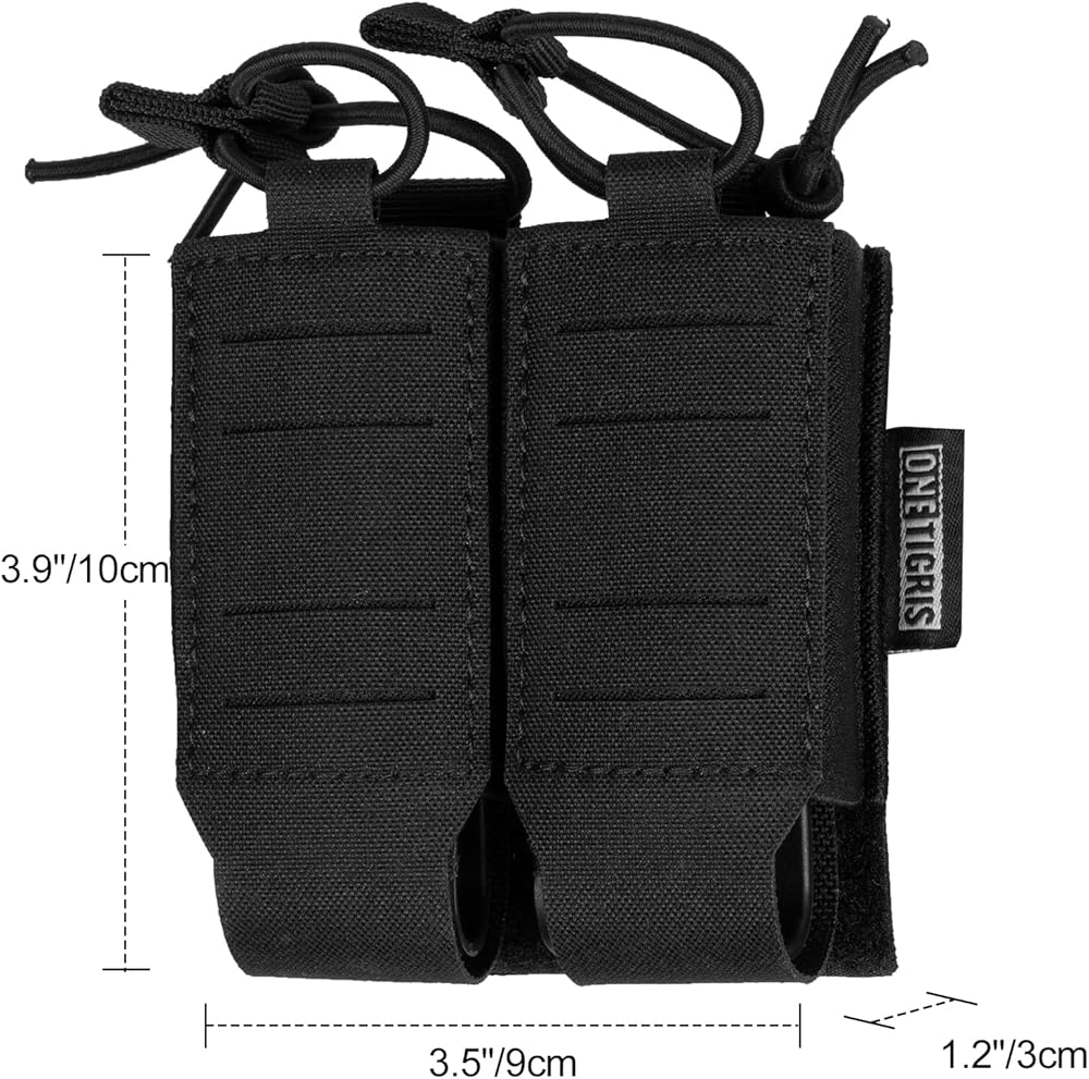 MANUFACTURING - Can attach to any MOLLE-compatible, capable of being mounted onto a duty belt, shooters belt, vest, or any other MOLLE systems, size: 3.74"(L)x1.18"(W)x3.94"(H)/9.5cm(L)x3cm(W)x10cm(H)