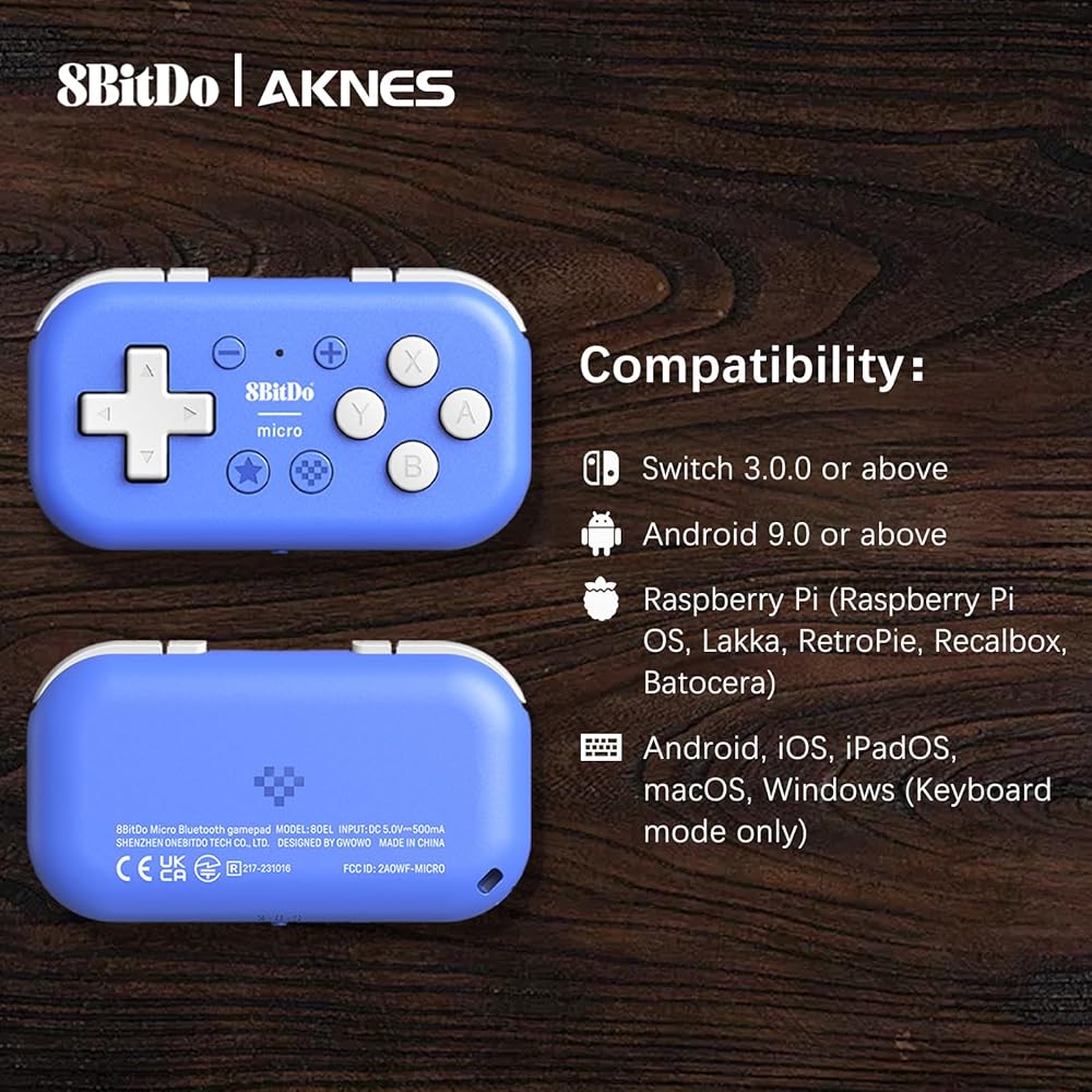 AKNES 8Bitdo Micro Bluetooth Controller, Pocket-sized Mini Gamepad for Switch/Lite/OLED, Android, and Raspberry Pi, Supports Keyboard Mode for macOS/iPadOS/macOS/Wins