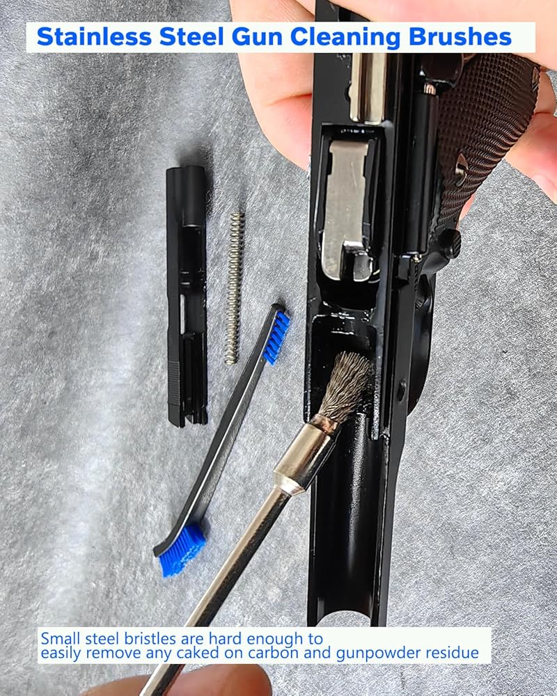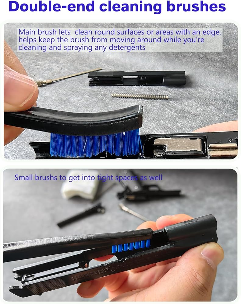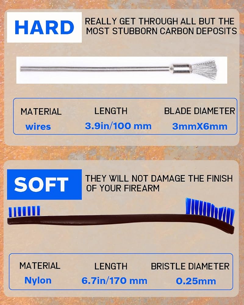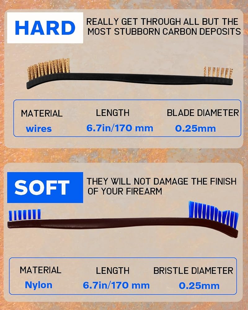 • التنظيف الفعال: مع شعيراتها القاسية ومقابضها المريحة ، هذه الفرش تنظيف الحطام بشكل فعال من مكونات الأسلحة.