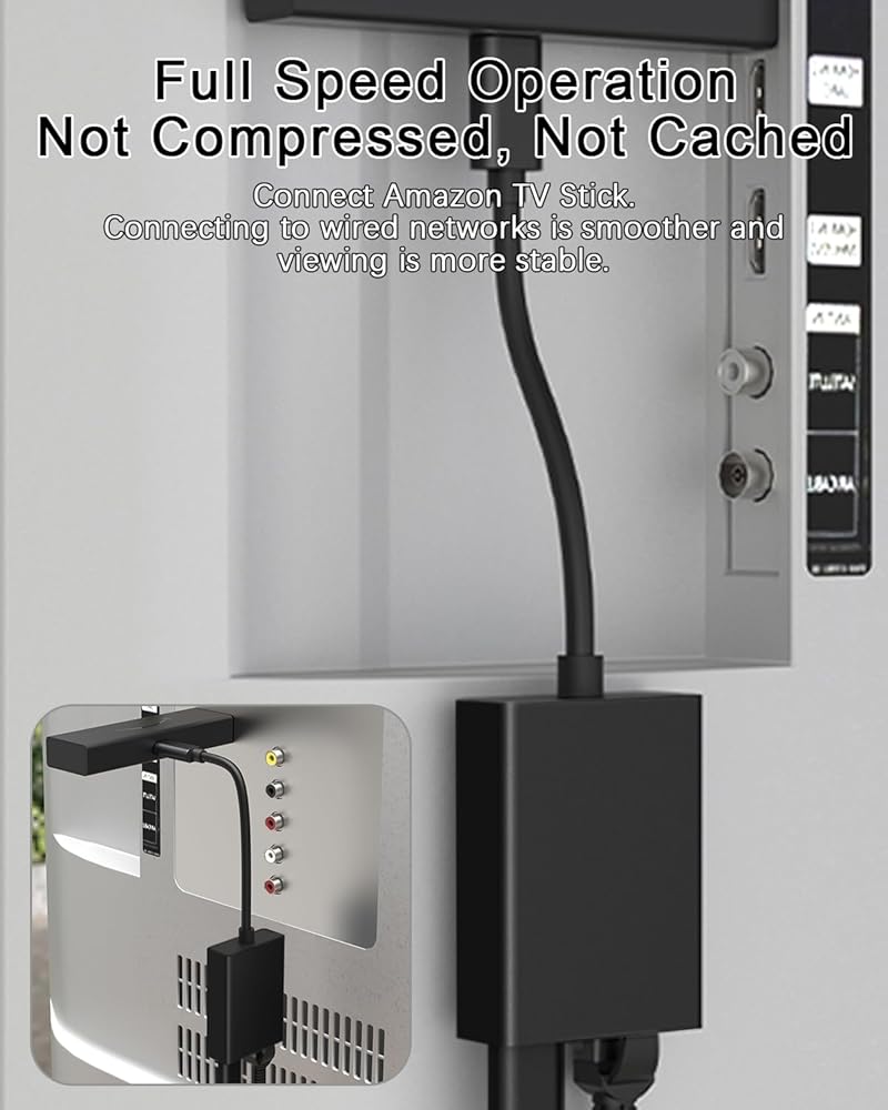 Ethernet Adapter For TV Stick - Our ethernet adapter is designed specifically for Fire TV sticks. With our Ethernet adapter for the Fire TV stick, the Ethernet cable connector can be directly connected to the TV stick, perfectly solving problems such as unstable wireless network connection, weak signal, and delay Let you enjoy a better visual experience.