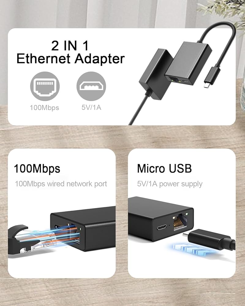 100 Mbps stable network connection - Our fire rod Ethernet adapter can achieve data transmission speeds of up to 100 Mbps. It can fully utilize your network performance and ensure stable network speed. Connecting directly through a micro USB port is the perfect choice for streaming movies and games. Say goodbye to an unstable WiFi signal connection.