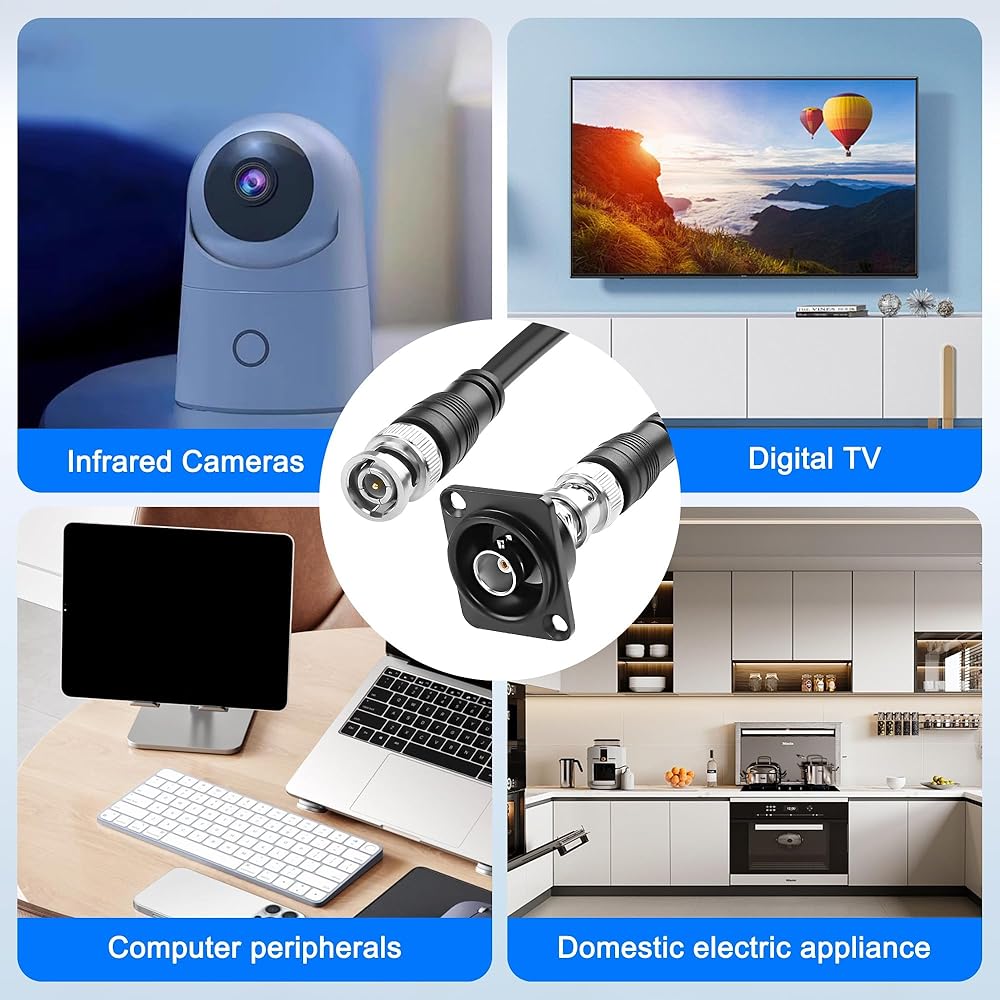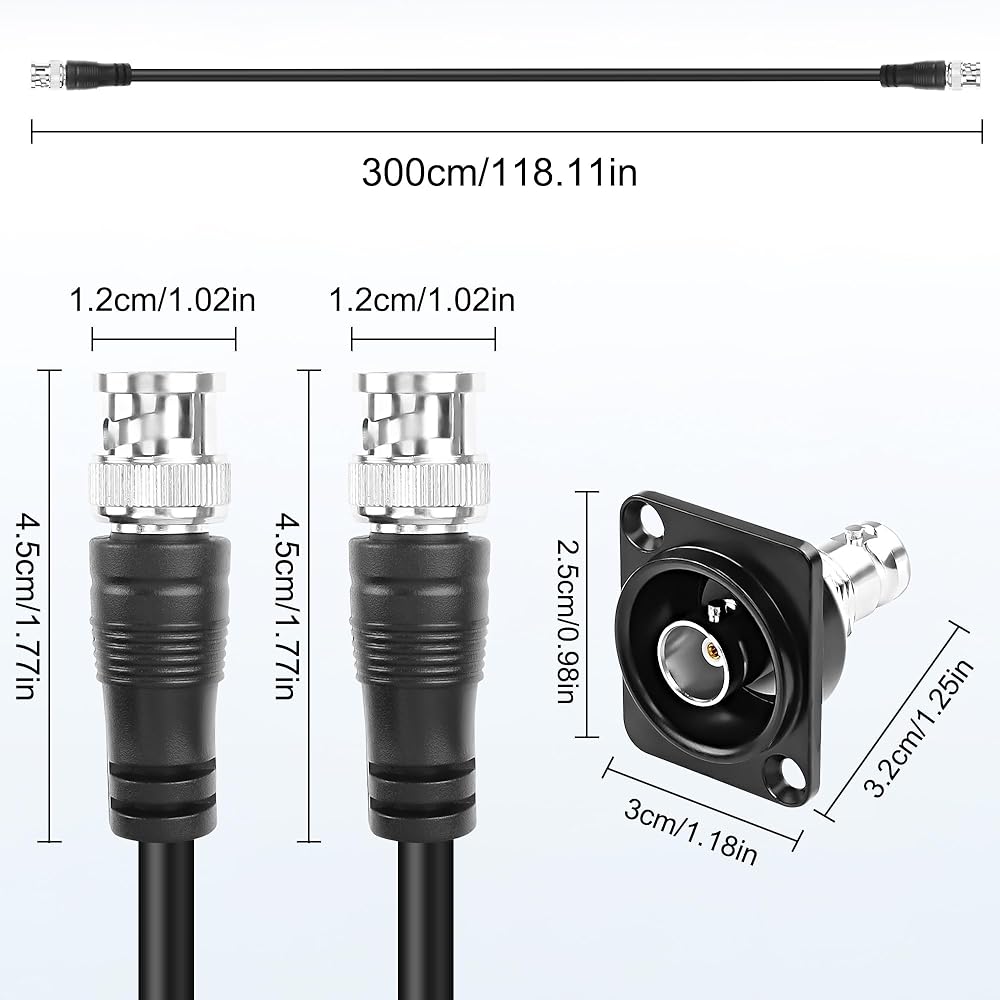 XMSJSIY D-Type BNC Panel Mount to BNC Cable RG59 Extension Cable D-Type BNC Female to BNC Male Jumper Radio Coax Cable 75 Ohm BNC to BNC Coaxial Cable for CCTV Camera Monitor - 3M/9.8FT