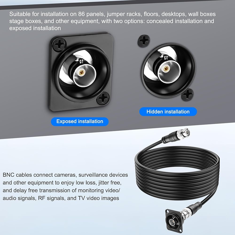 BNC surveillance video extension cable is plug and play and does not require any tools. The BNC cable is inserted into the device port that needs to be used, and the RG59 coaxial cable can be bent for easy use; Paired with a D-type BNC plug, it can be installed on wall panels or computer cases and connected using BNC cable extension cords
