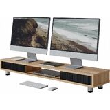 Fenge Dual Monitor Stand, 42.5inch Long Monitor Stands Riser for 2 Monitors, Sliding Door with Storage Organizer Stand for Desk, 2 Tier Desk Shelf for Laptop, Pc, Printer, Computer, TV