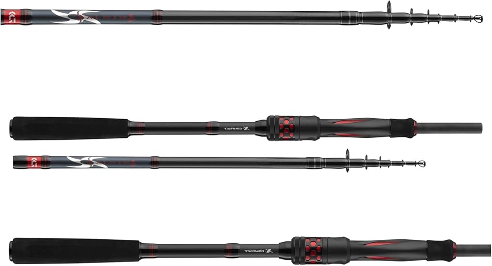 The telescopic tip sections with detachable handle feature a closed length of only 1 foot 8 inches (50 centimeters), so these rods can be easily transported in a backpack or suitcase and are immediately ready for fishing.