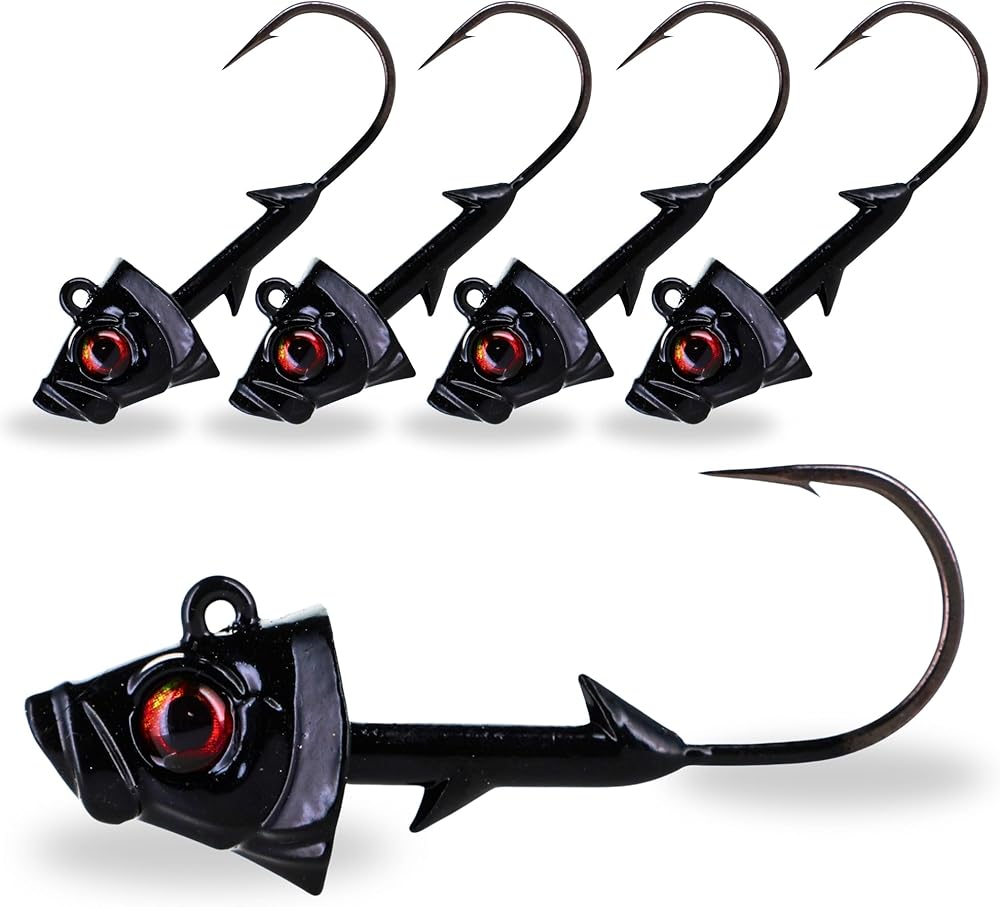 Realistic Fish Head Design: The intricate design of these jigs, complete with 3D eyes, provides a realistic look that draws fish in by mimicking natural prey.