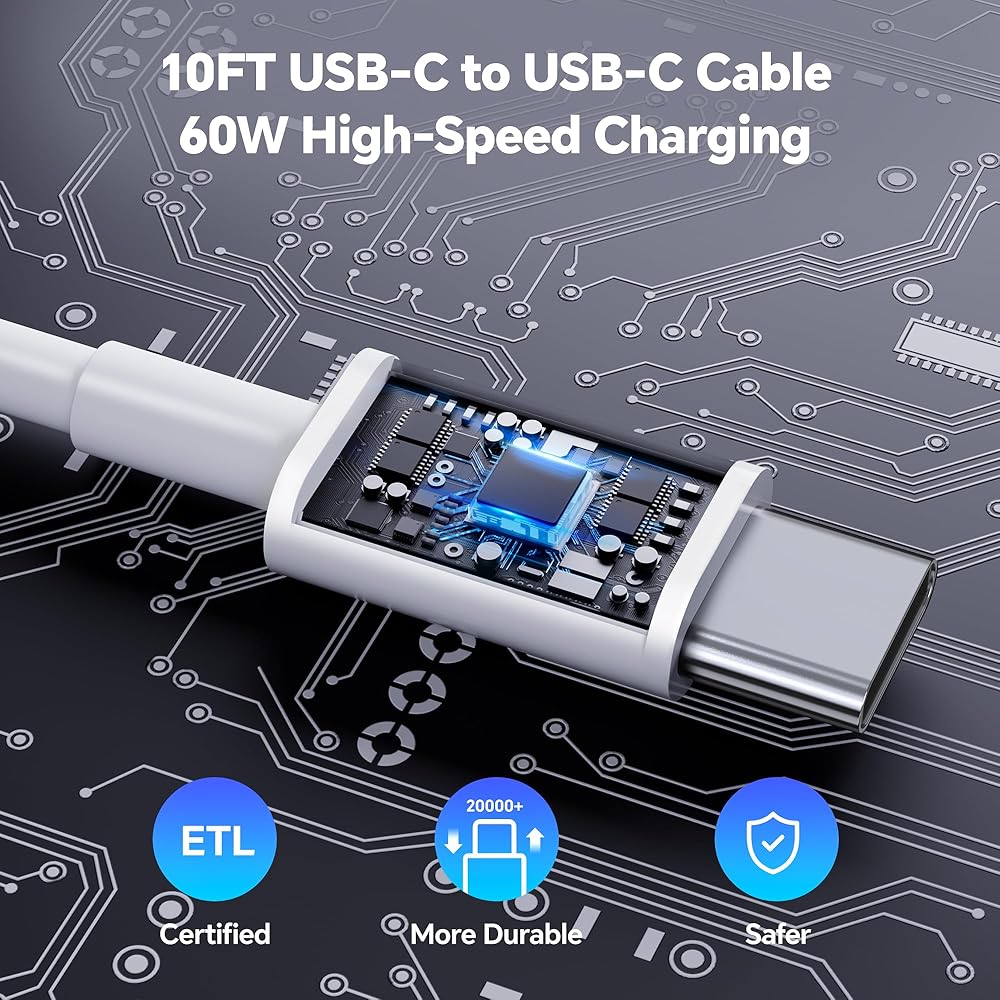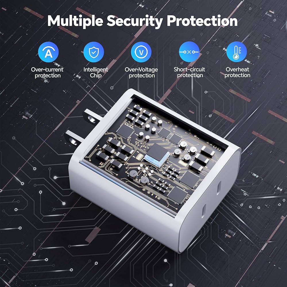Bulit in High-Tech Chip The updated smart iQ chip in the USB-C power adapter protect your phone and pad from overcurrent, over-voltage, short-circuit and overheating.