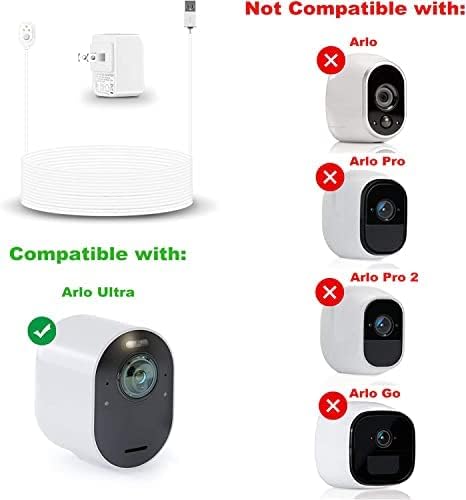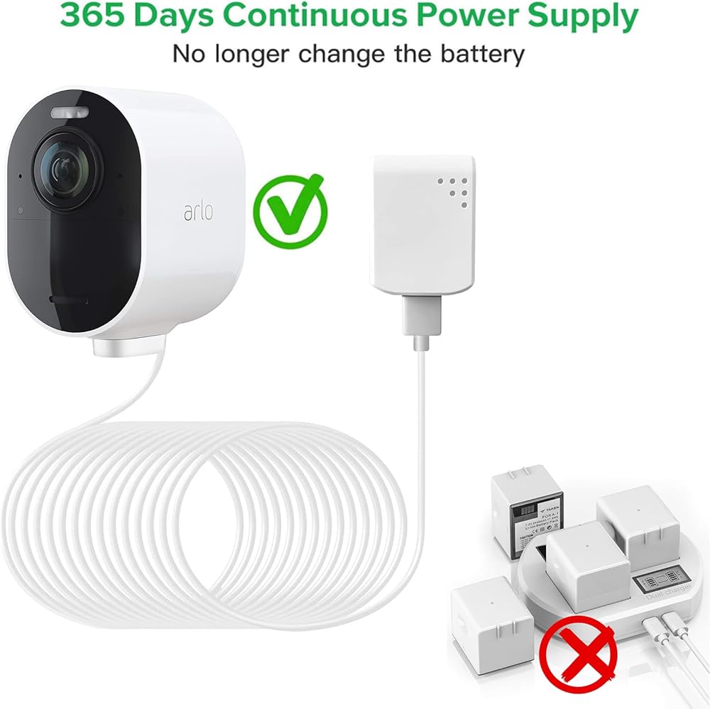 لم تعد تغيير البطارية - لا تحتاج إلى تسلق سلم وأخذ البطاريات لشحنها. محول الطاقة 5V 2A وكابل شحن في الهواء الطلق 30 قدمًا/9 أمتار للشحن المستمر والتشغيل دون انقطاع لشحنك المتوافق مع كاميرا أمان Arlo Ultra 4K. مريحة للغاية وتوفير الوقت. (ملاحظة: الكاميرا غير مدرجة).