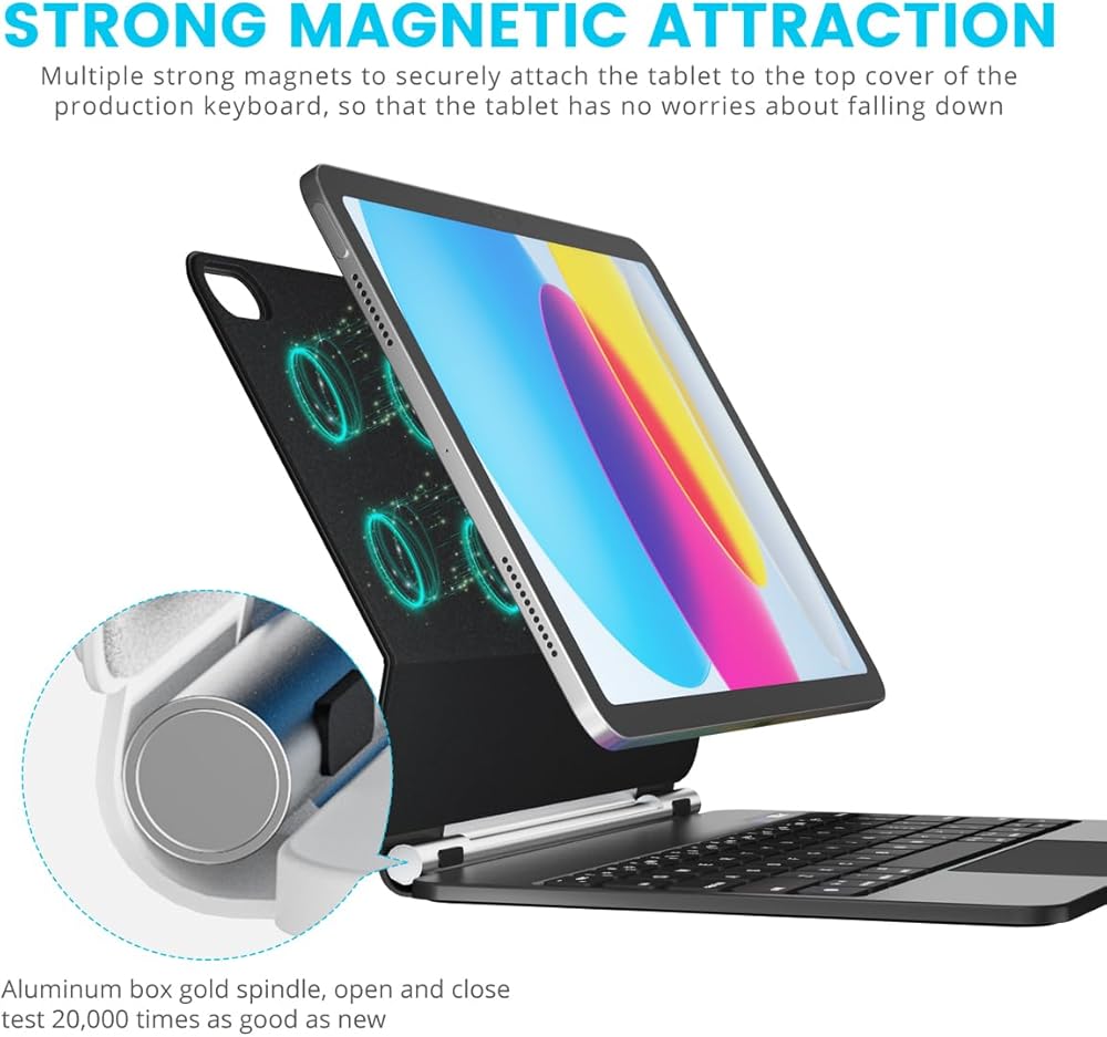 【Smart Protection】The keyboard case is composed of a sturdy magic keyboard base and synthetic vegan leather case which offers unmatched protection to the iPad 10th gen during use, on the go or in case of accidental knocks/falls. giving your iPad front and back protection, preventing accidental drops and scratches.