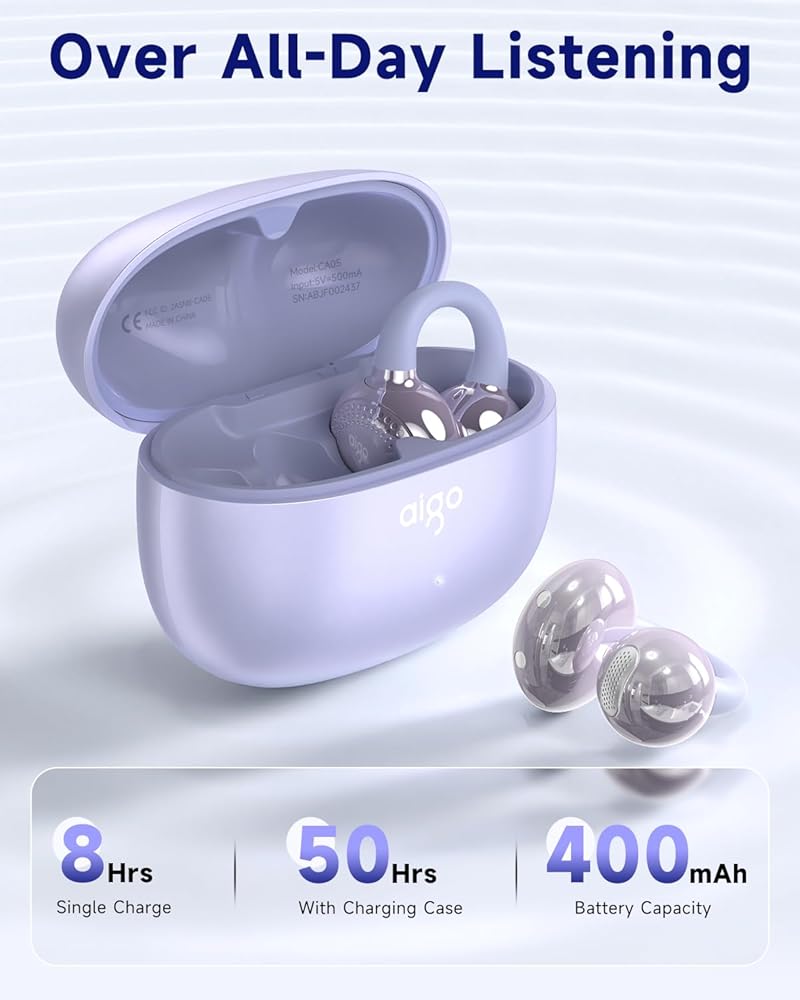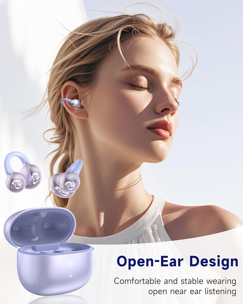 【Clip Design Benefits】The open-ear clip design of aigo CA05 earbuds offers comfort, safety, hygiene, portability, style, and compatibility