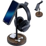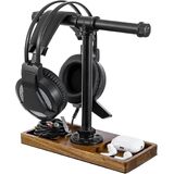 This deluxe headphone stand combines natural wood and industrial metal elements, creating a rustic yet modern aesthetic that complements any desk or workspace while keeping your headphones easily accessible
